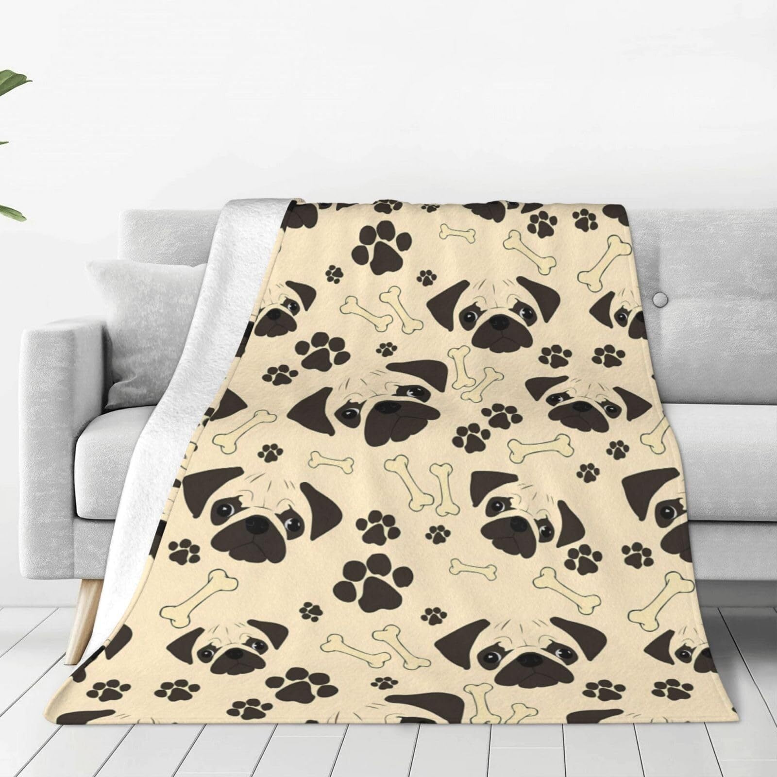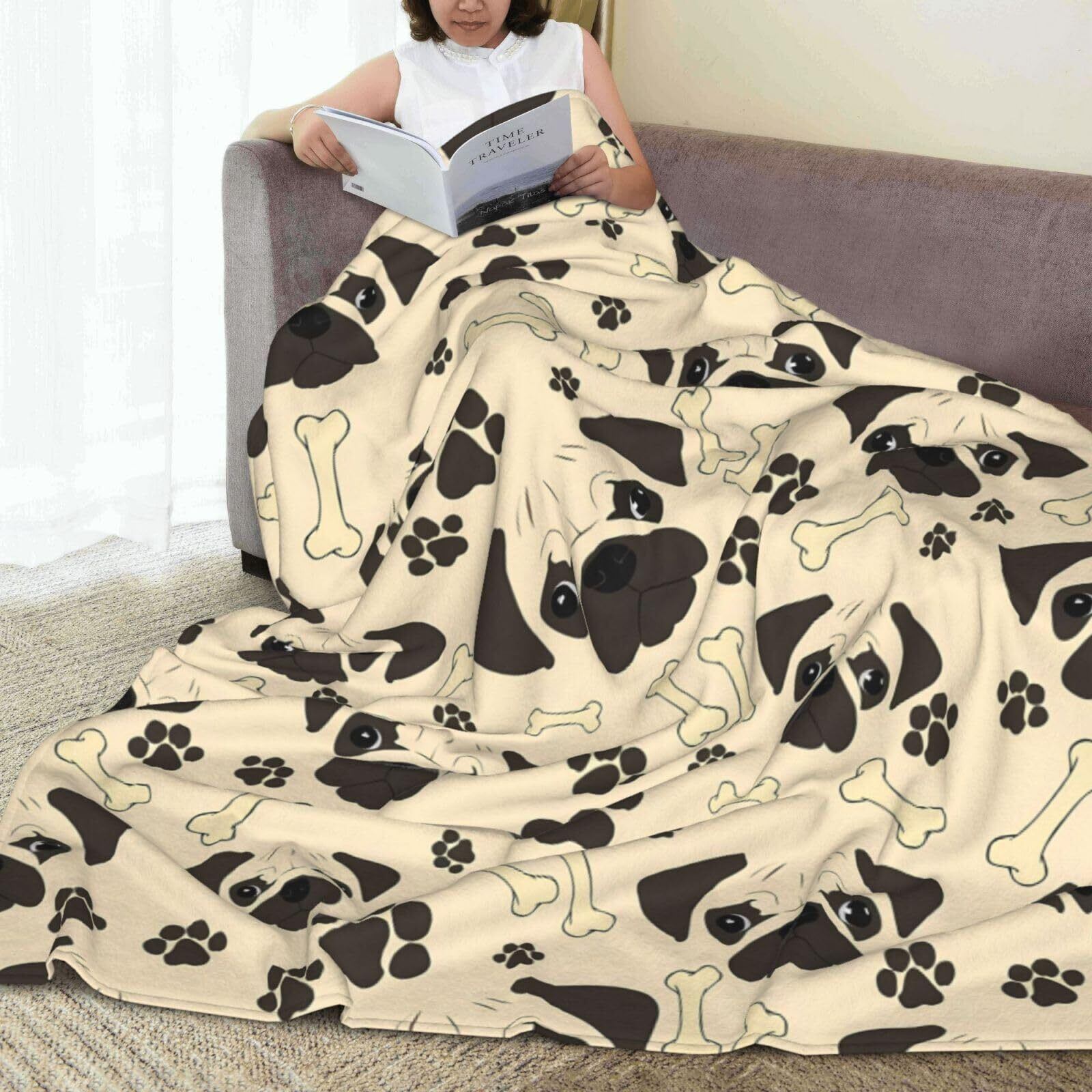 ブランケット フランネル ひざ掛け 萌えグッズ パグ 犬柄 おしゃれ 毛布 軽量 薄手 ふわふわ マイクロファイバー 柔らかく肌触り 静電気防止 暖かい 洗える 四季適用 眠り 寝具 防寒グッズ キャンプ ブランケット MT1827XA (102x76cm)