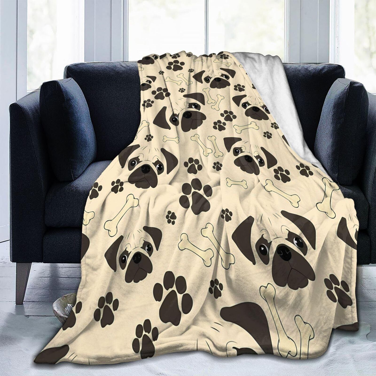 【2022最新】ブランケット フランネル ひざ掛け 萌えグッズ パグ 犬柄 おしゃれ 毛布 軽量 薄手 ふわふわ マイクロファイバー 柔らかく肌触り 静電気防止 暖かい 洗える 四季適用 眠り 寝具 防寒グッズ キャンプ ブランケット MT1827XA (102x76cm)