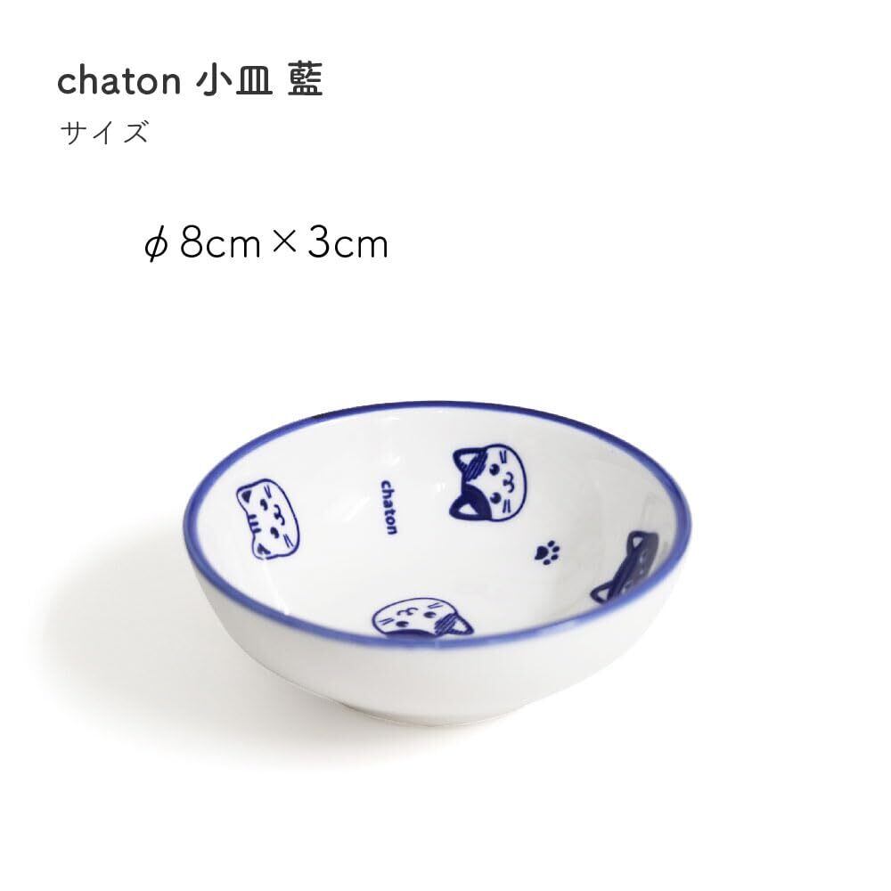 田中箸店 chaton 小皿 藍 猫柄 電子レンジ対応 食洗機対応 皿 取皿 お皿 取り皿 おしゃれ 可愛い シンプル デザイン 家庭用 業務用 キッチン 雑貨 ダイニング 和食器 プレゼント ギフト 実用的 猫モチーフ 猫グッズ ネコ食器