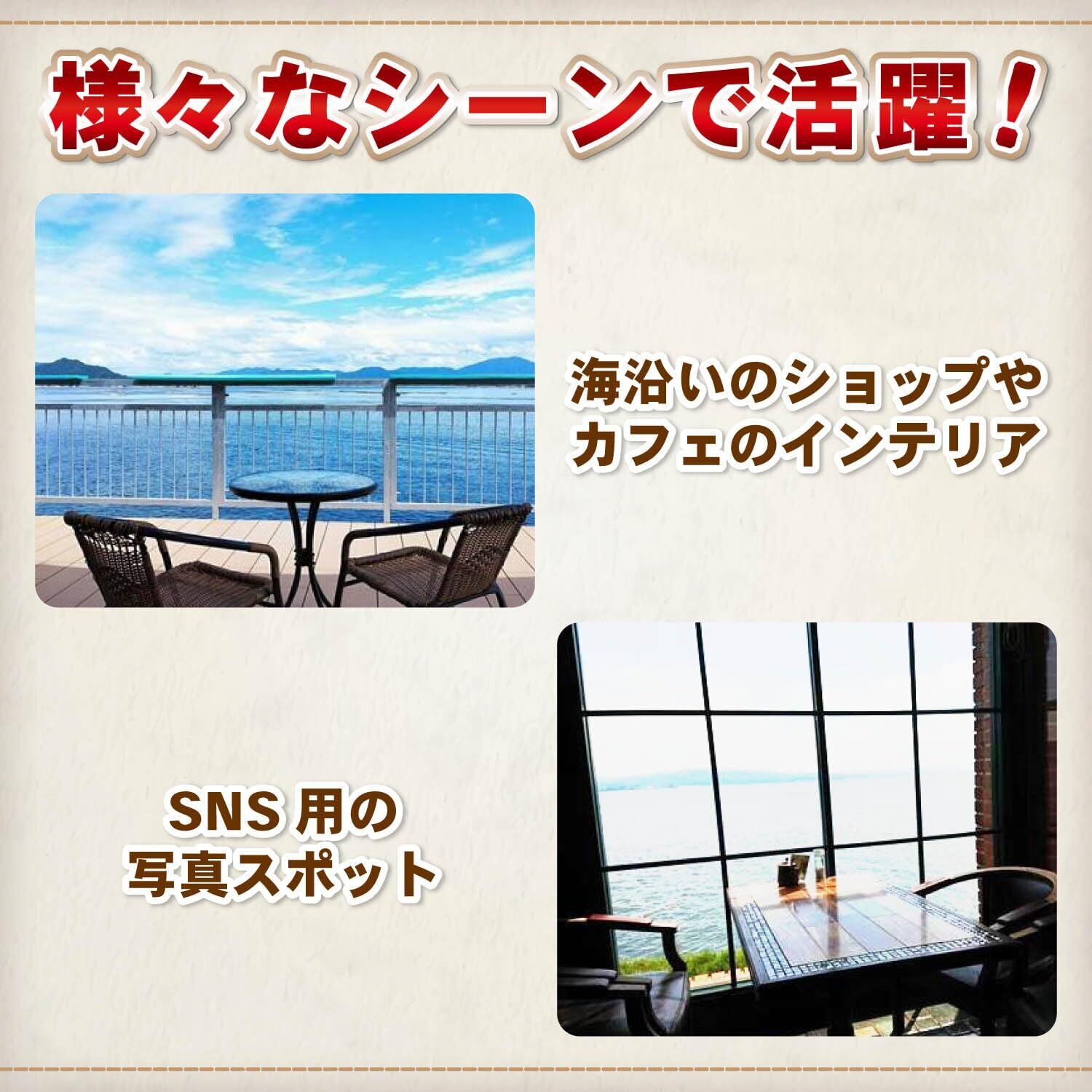 様々な場所のインテリアとしても活躍:海沿いのショップやカフェ、レストラン、ホテルなど、もちろんそれ以外でもどんな空間にもマッチする装飾品です。イベントやパーティーでもよいSNS用の写真スポットに。