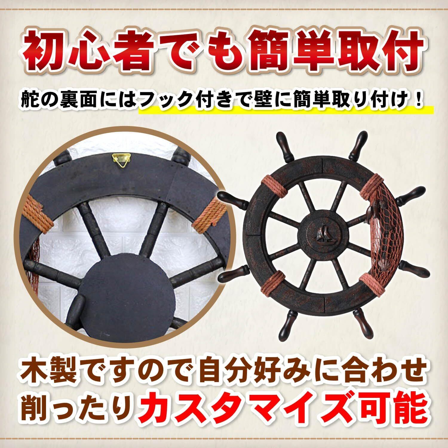簡単取り付け&カスタマイズ:舵の裏面にはフックが付いており、壁に簡単に取り付け可能です。また、木製ですので自分好みに合わせて、削ったりとアレンジしてオリジナルのデコレーションを楽しむこともできます。