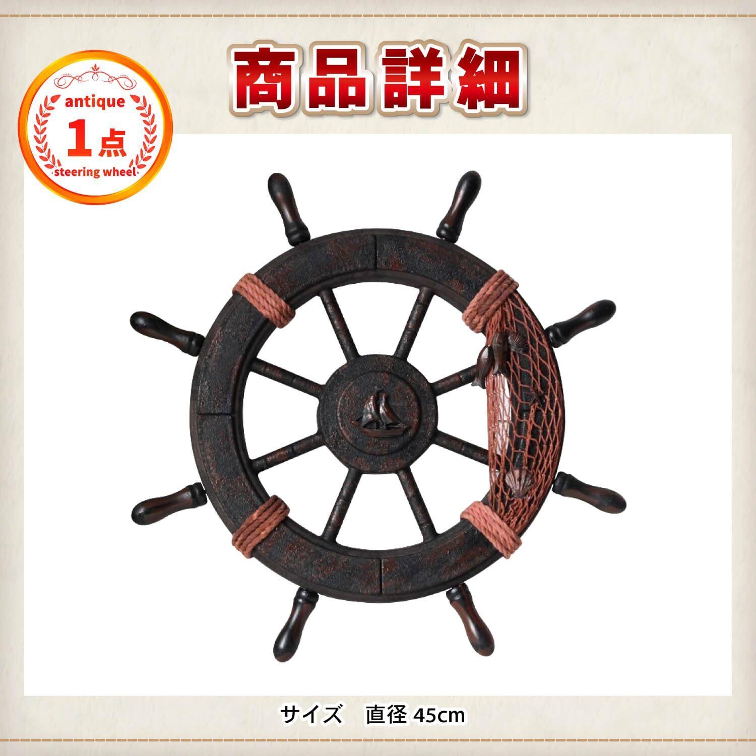 Archnote 舵輪 インテリア 木製 壁掛け オブジェ 舵 マリンハンドル 装飾 45cm