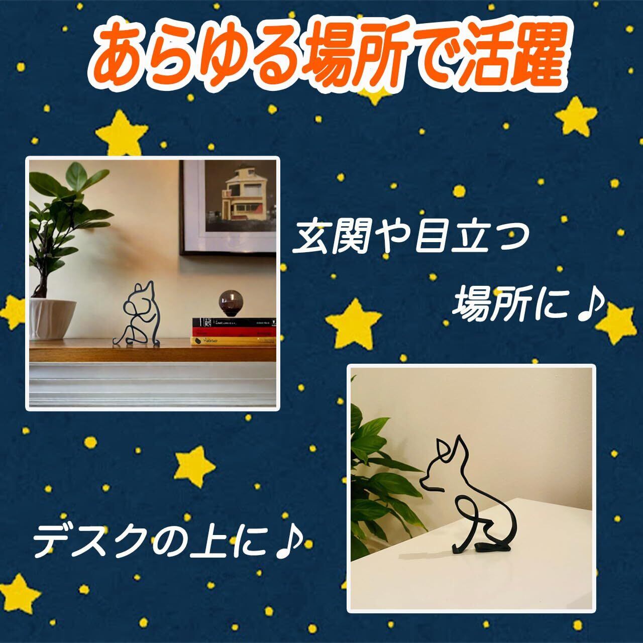 商品説明文5: 『モダンかわいい犬の置物』おしゃれなインテリアにぴったりなワイヤーアートの置物。抽象的でモダンなデザインは、どんな空間にも馴染みます。庭や玄関先に置いたり、リビングルームのアクセントにしたりと、様々なシーンで活躍します。アイアン素材でつくられたかわいい犬のオブジェは、モダンでありながらも温かさを感じられる一品です。ギフトとしても喜ばれるアイテムです。