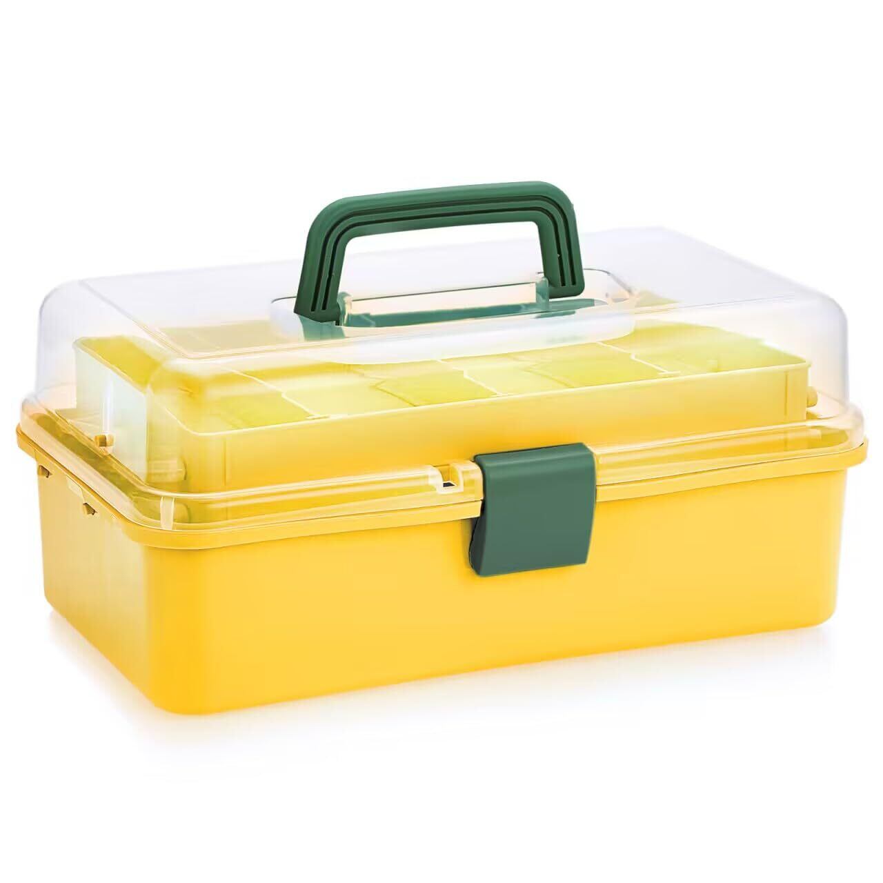 【在庫処分】Sumnacon 大容量ツールボックス 収納ボックス 収納箱 三段折りたたみ収納ボックス 多機能収納ボックス 調整可能な間隔 雑貨収納ボックス 取っ手付き 小物入れ 家用 車用 (イエロー) | paghag