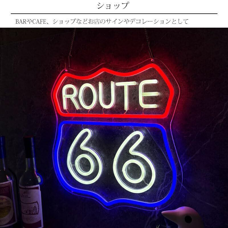 【WNJAPAN】 ネオンサイン ROUTE66 インテリア 壁掛け 看板 サインボード 部屋 玄関 子供部屋 カフェ バー 雑貨 アメリカ雑貨 アメリカン雑貨 店舗用 NK-56
