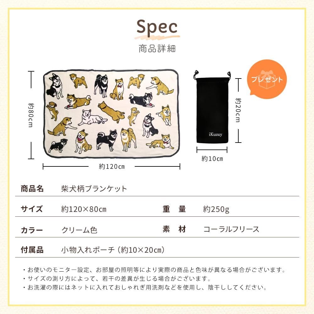【iKuzuy(アイクジ)】柴犬 ブランケット ひざかけ かわいい柴犬 グッズ 雑貨 (120cm×80cm コーラルフリース)