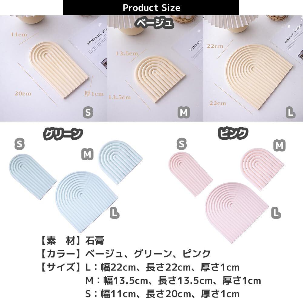 【素材】石膏 【カラー】ベージュ、グリーン、ピンク【サイズ】L:幅22cm、長さ22cm、厚さ1cm M:幅13.5cm、長さ13.5cm、厚さ1cm S:幅11cm、長さ20cm、厚さ1cm