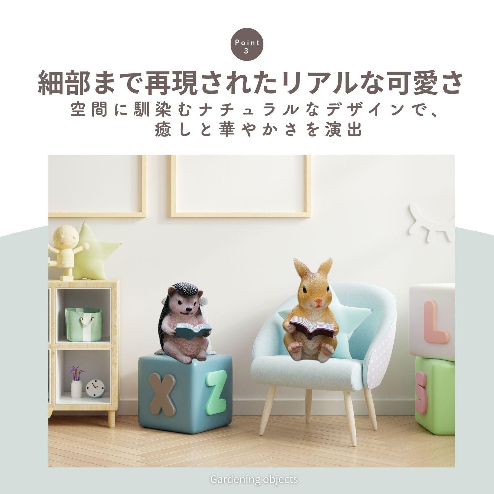 読書姿が愛らしい、癒しのガーデニング雑貨:ハリネズミが本を読む姿が見る人をほっこりさせるデザインのガーデンオブジェです。花壇や玄関先、ベランダに置くだけで、お庭が癒しと楽しさで満たされます。
