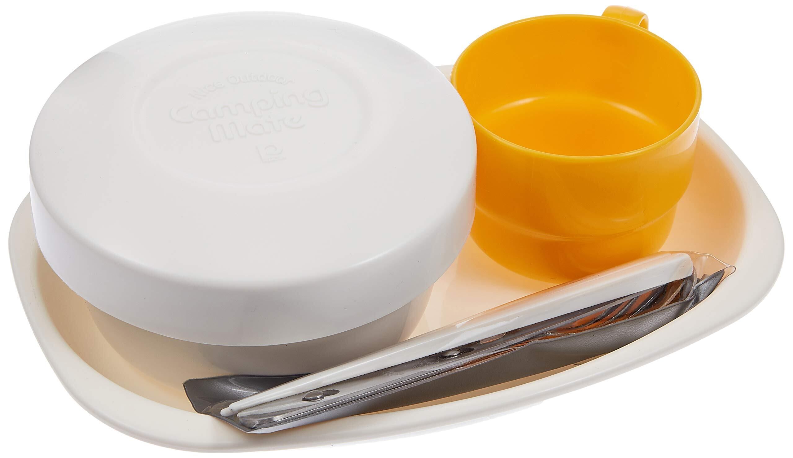 セット内容:ボール、プレート、フタ(プレート兼用)、マグカップ230ml、スプーン、フォーク、ナイフ、はし、カレー皿、バッグ