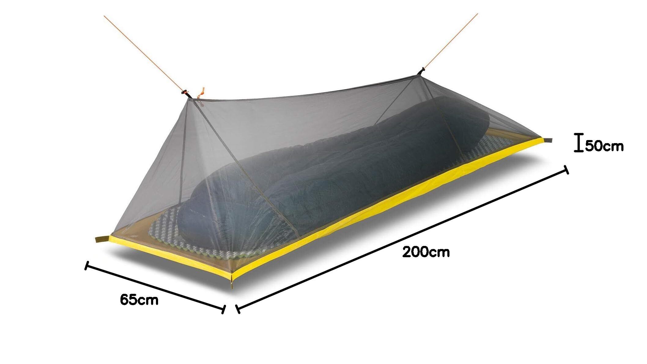 【軽量と広々】230g超軽量、キャリーバッグ付き、持ち運び簡単。200cmx65cm広いスペース、1人ゆっくり使えます。折りたたみで、コンパクト、スペースを節約します。登山、キャンプ、ハイキング、トレッキング、旅行のテントとして理想的です。