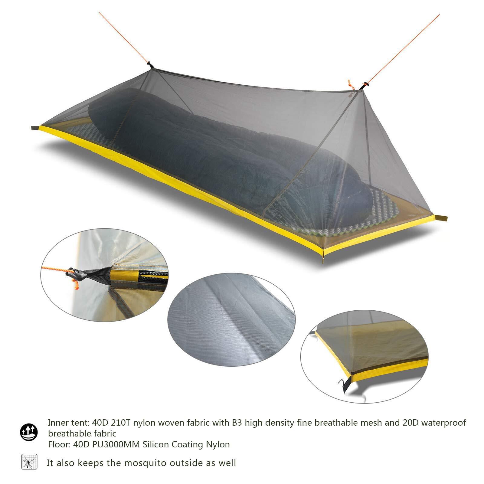 MUXSAM インナーテント 1人用 蚊帳 モスキートネット 超軽量 メッシュテント 通気性 設営簡単 キャリーバッグ ペグ付き ソロ キャンプ アウトドア用品