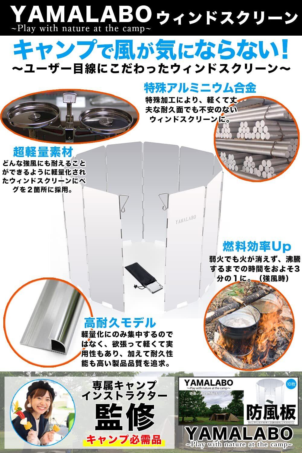 YAMALABO ウィンドスクリーン 風防 防風 キャンプ 風除け かぜよけ アウトドア 防風板 軽量 収納袋 付き 風除板