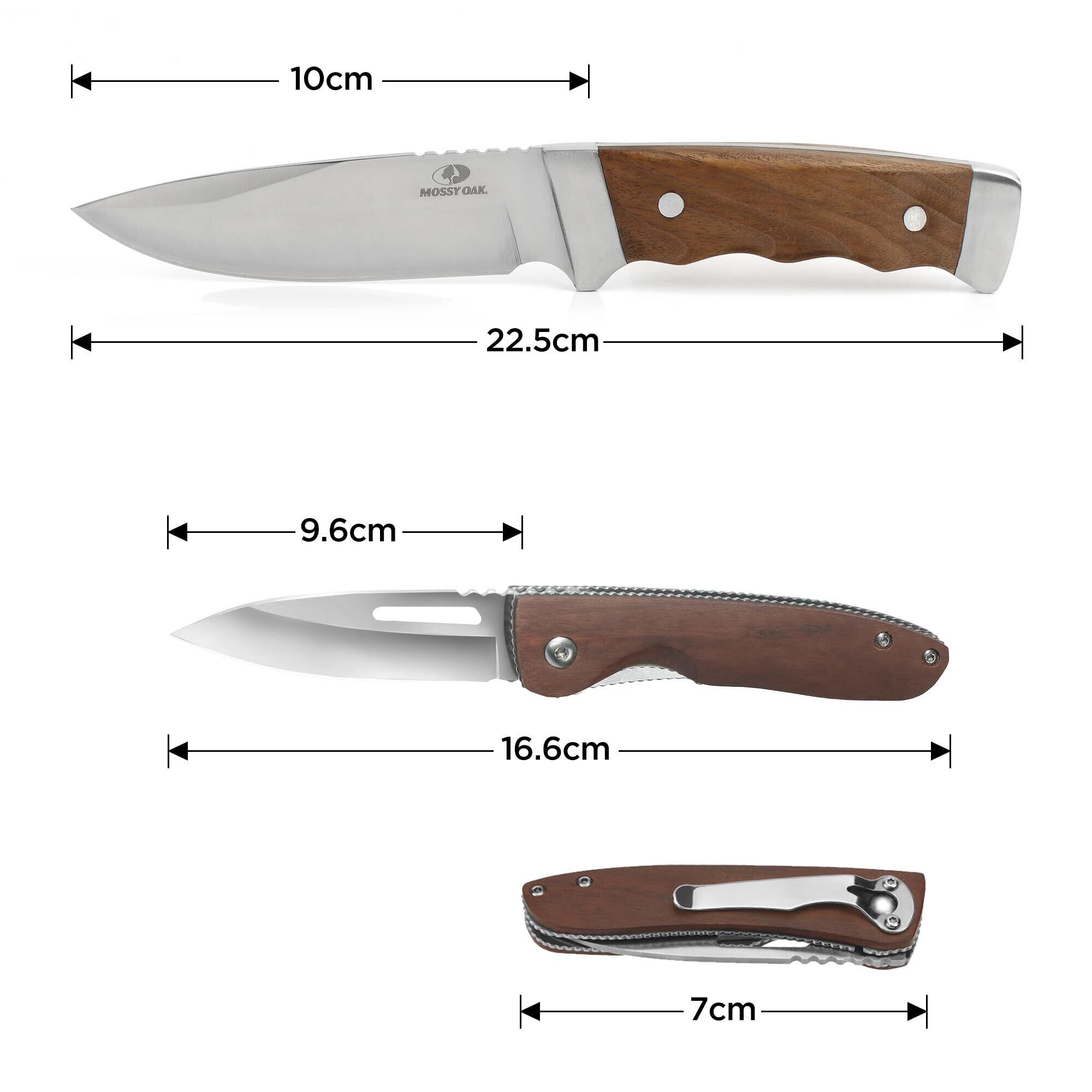 MOSSY OAK ナイフセット シースナイフ 折りたたみナイフ ポケットナイフ ケース付き フルタング構造 天然ウッドハンドル 木目様ハンドル 全長225mm&166mm DIY 登山 キャンプ 防災 釣り キャンプ
