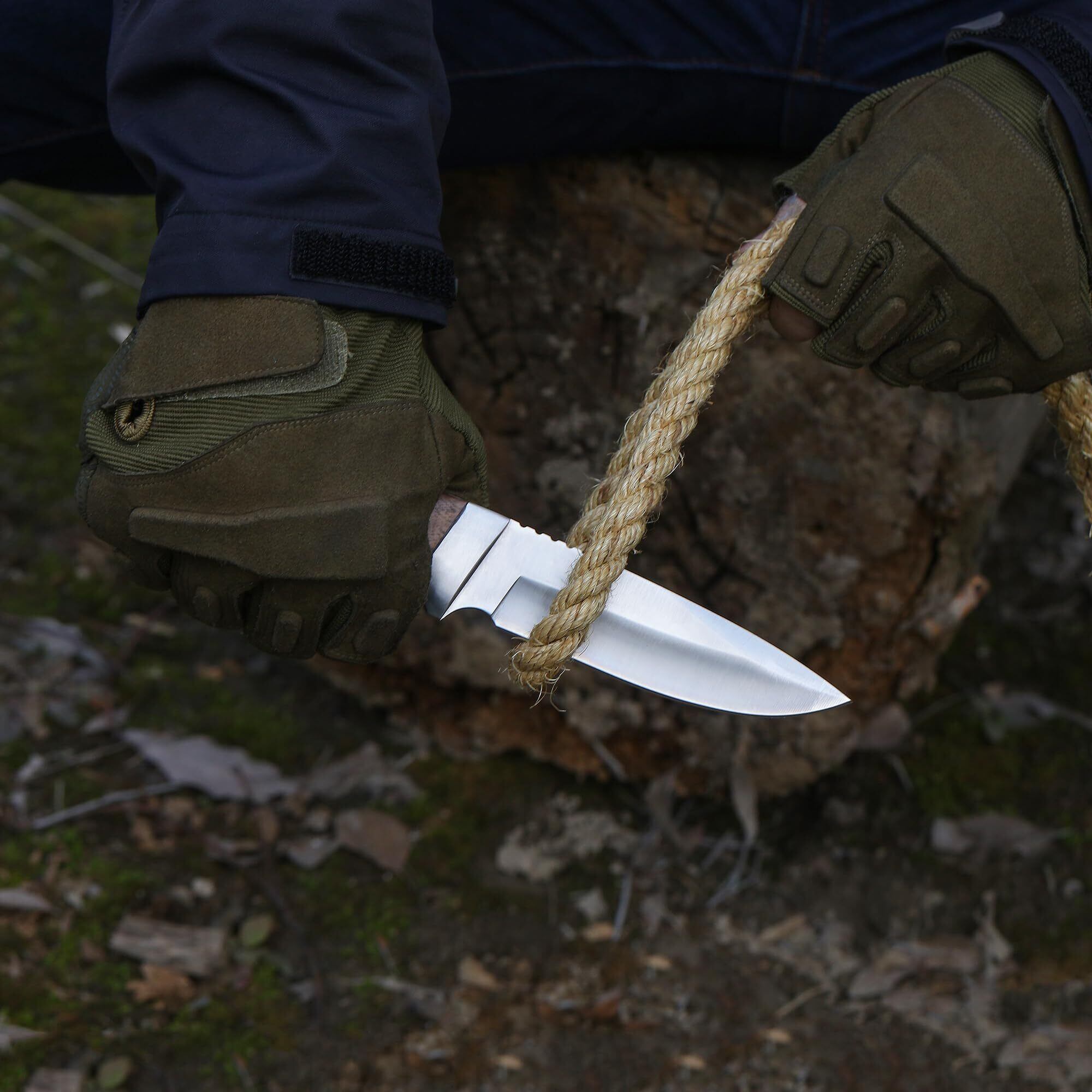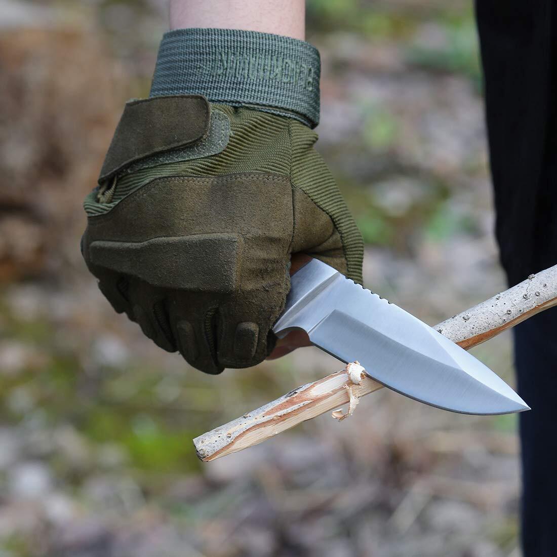 【フルタング構造】シースナイフのブレードを挟み込んだ堅牢なフルタング構造で、グリップ材質は天然ウッド材で手に優しくて、質感があります。ブレード背中に滑り止めの角度をデザインしています。