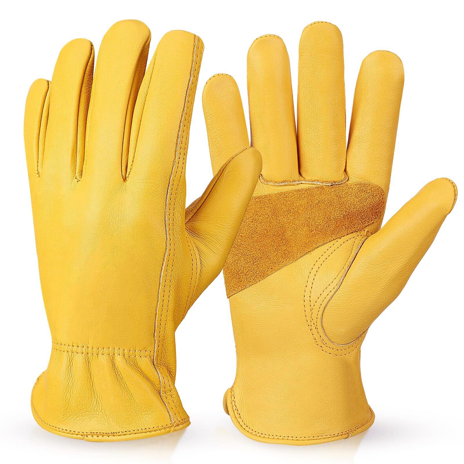 [OZERO] 革手袋 作業用【厚手牛本革5倍の耐久性】 耐熱グローブ キャンプ手袋: 溶接 焚き火 防災グッズ 耐火 耐摩耗 メンズ レディース イエロー S M L XLサイズ,XL