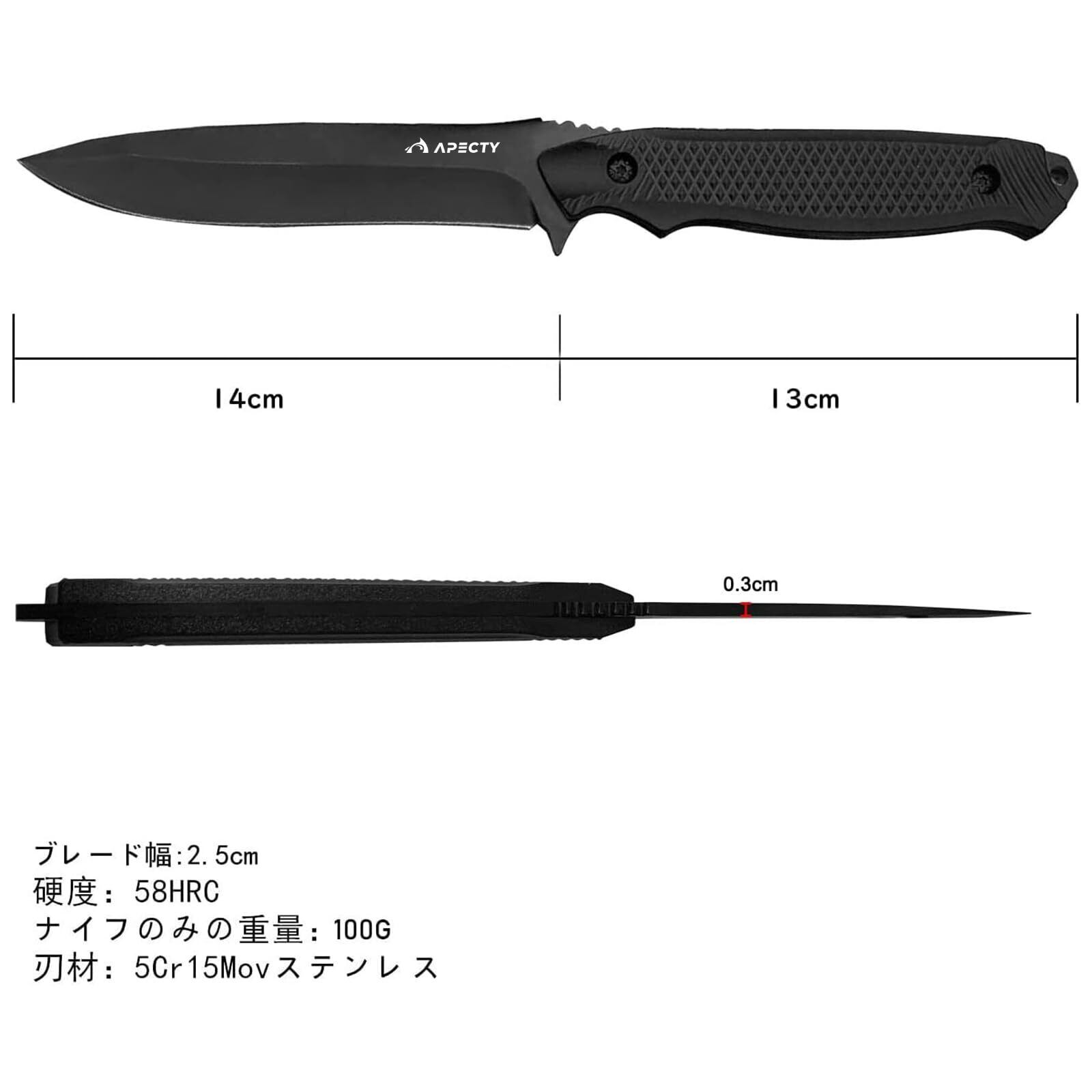 APECTY シースナイフ キャンプナイフ フルタング ステンレス鋼 切れ味良い アウトドア サバイバルナイフ 防災 フィッシング 包丁 専用シース付き