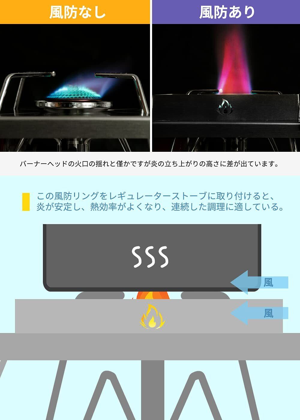 【五種類バーナー対応・安定性】キャンプの定番アイテムとしてのST-310、ST-330、イワタニジュニアコンパクトバーナー、trangia(トランギア) アルコールバーナー、エバニュー(EVERNEW) チタンアルコールストーブ EBY254及び同じ形のアルコールバーナーに対応します。足は1.6mm太さで曲面デザインを使うのでしっかりした安定性を持っています。