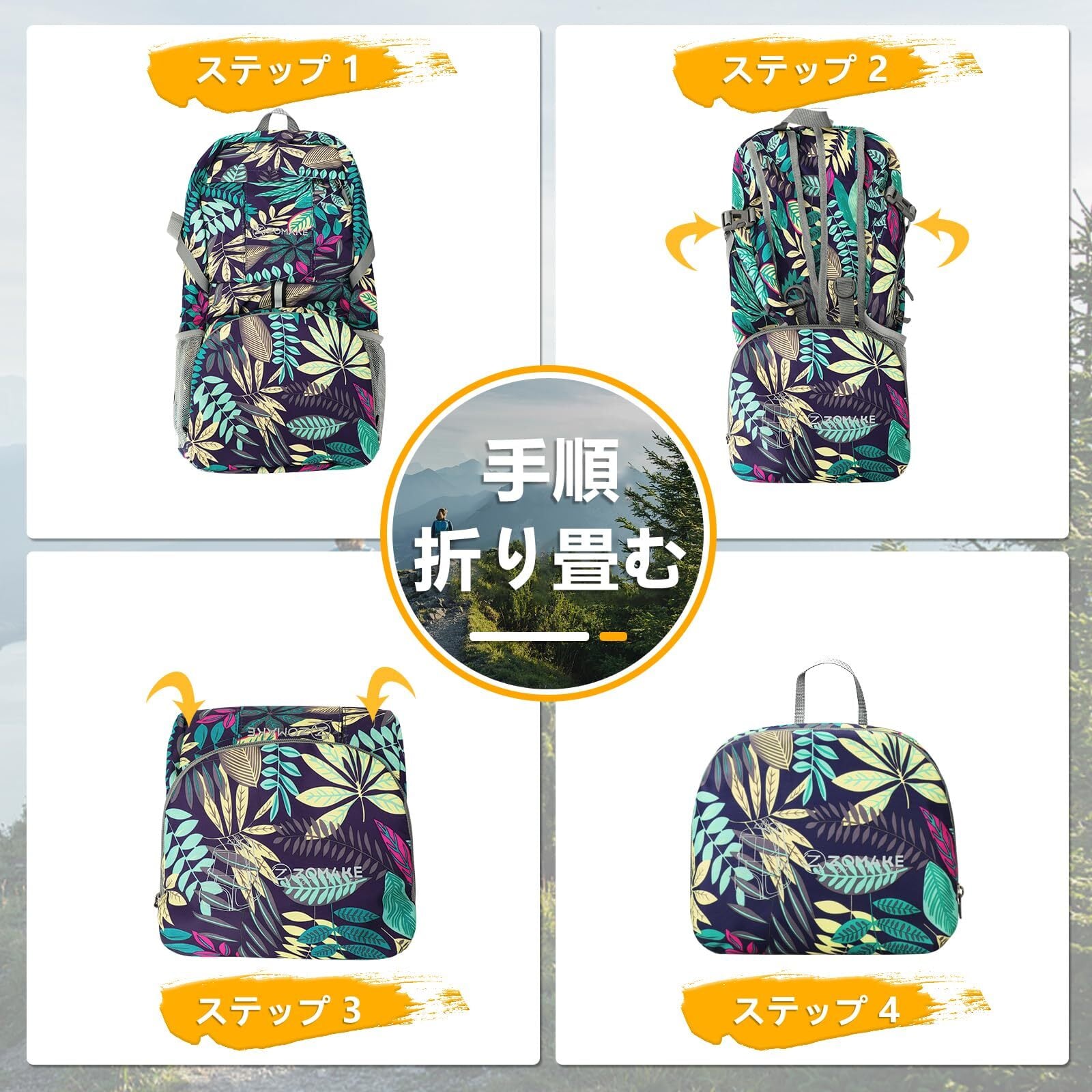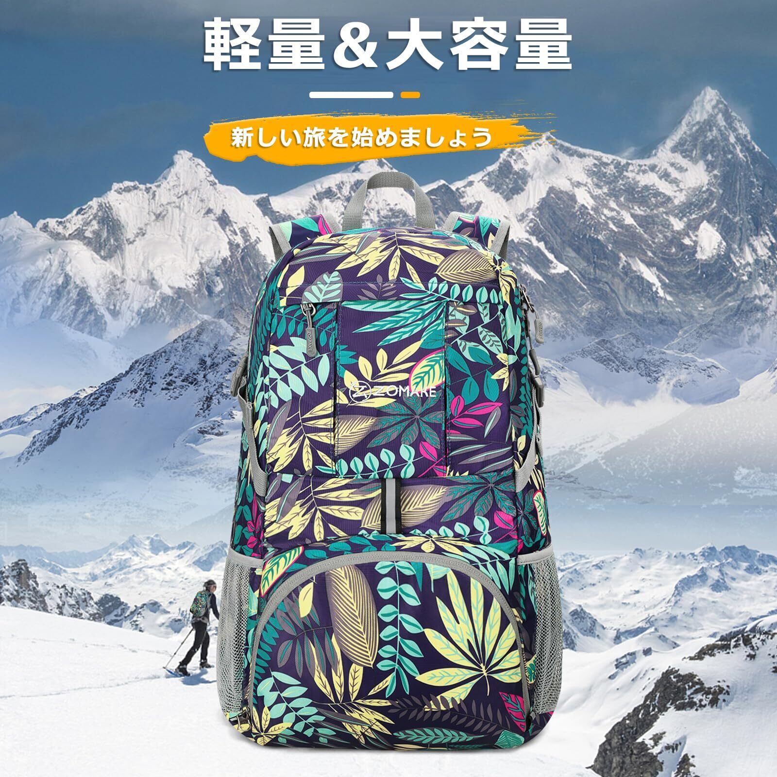[ZOMAKE] 折りたたみリュック 大容量 35L アウトドアバック チェストストラップ付き 防水 軽量 アタックザック デイパック 登山用 キャンプ 旅行 スポーツ 通学 通勤 メンズ レディース
