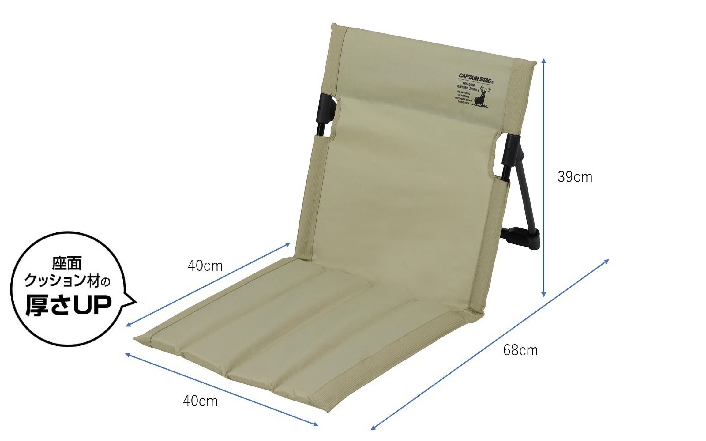 【 限定】 キャプテンスタッグ(CAPTAIN STAG) アウトドアチェア グランドチェア フィールド座椅子 Type2 幅40×奥行68×高さ39cm 重量約560g 収納バッグ付き 軽量 カーキ UC-1839