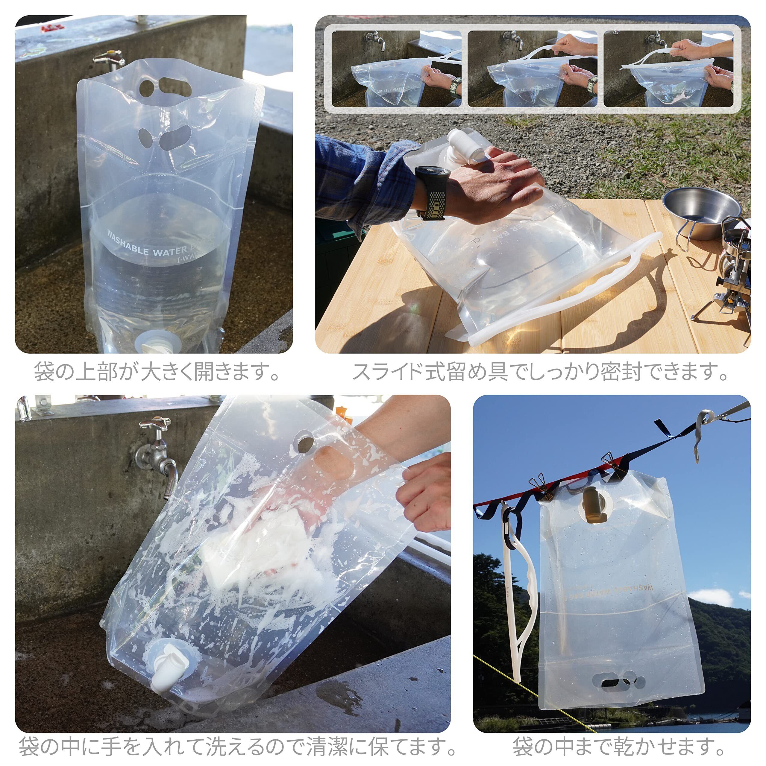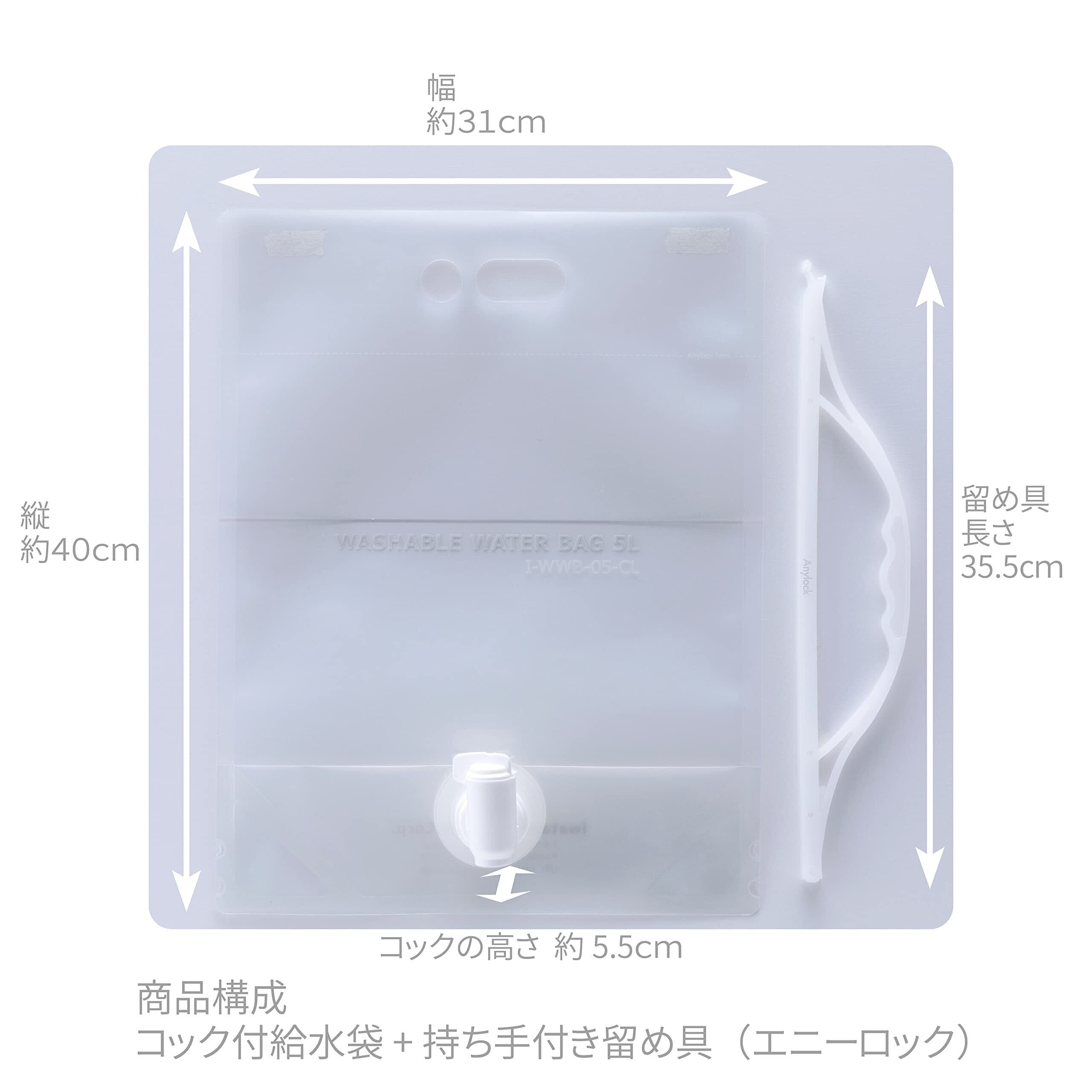 岩谷マテリアル 水タンク ウォッシャブル ウォーターバッグ 5L 透明 WWB-5CL 注ぎやすいコック付き キャンプ レジャー 防災 約37×36×16cm