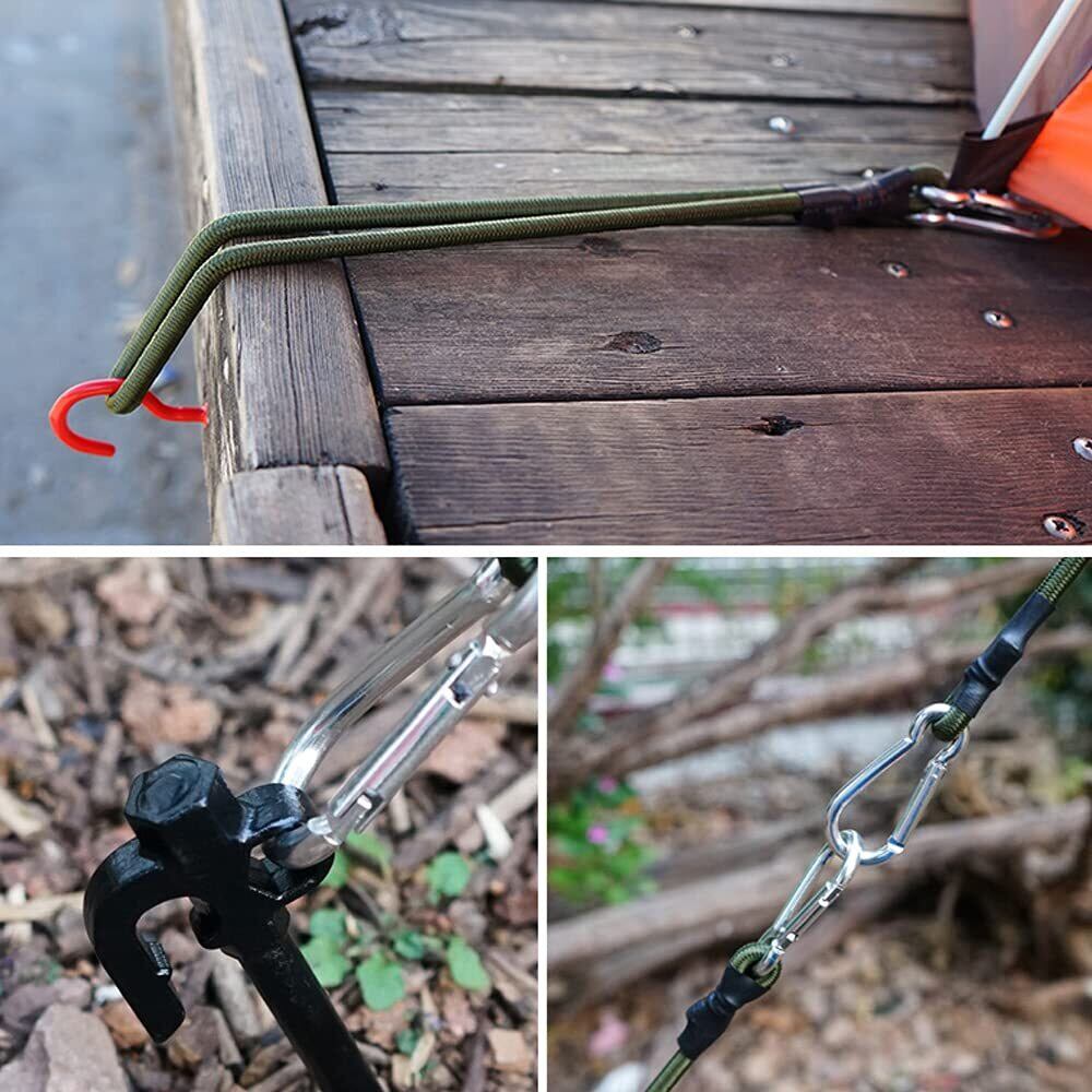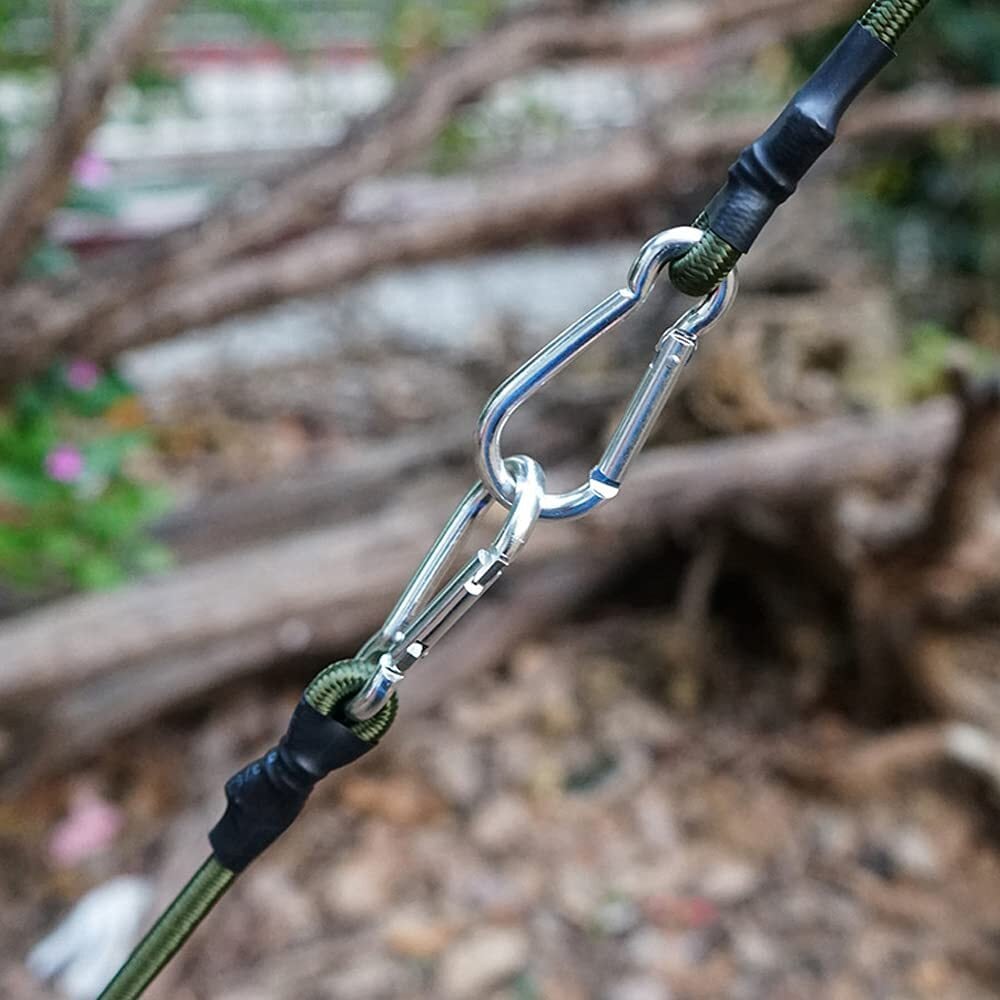 【安全性高い】ストレッチコードの両端のカラビナフックは、滑ったりすることなく、アンカーポイントにロックできます。