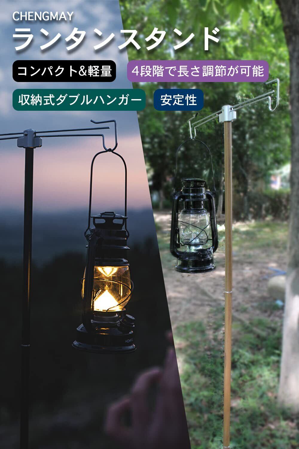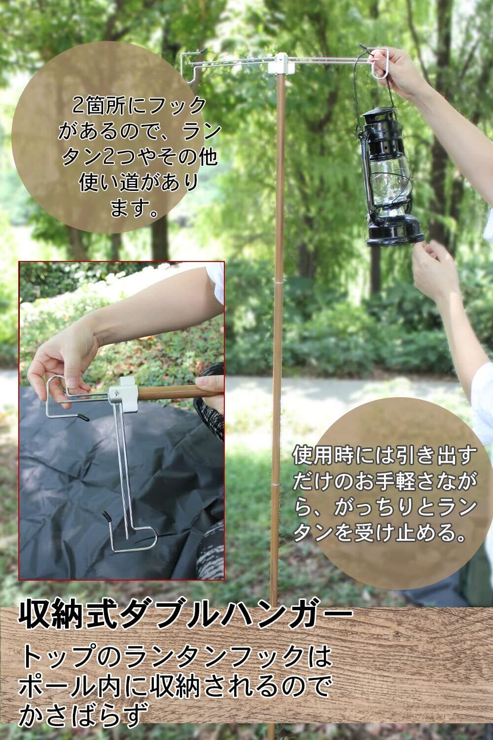ランタンスタンド 収納式ダブルハンガー 直径16mm 打ち込み 軽量 高さ調整 コンパクト キャンプ ランタンポール アウトドア用品