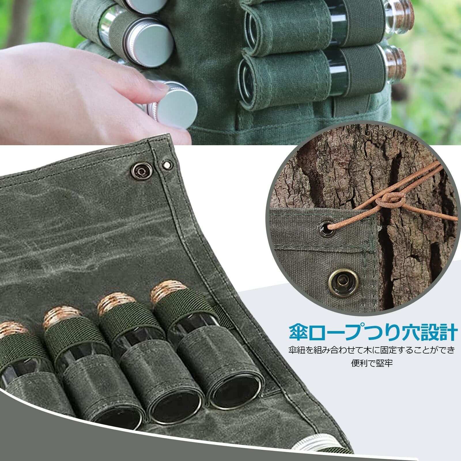 【調味料ケース&優れた設計】金属ボタン、丈夫でさびない。バンドが付いていて、固定しやすい。油ワックスキャンバスの材質は加工時に繰り返しワックスをしみこませて防水の目的を達成して、いかなる方式の洗浄を行ってはいけなくて、さもなくば防水の能力を失うことができます。
