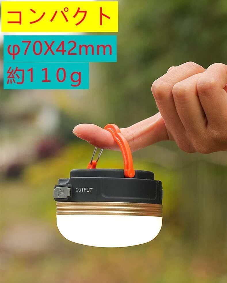 【小型かつ軽量】LEDランタンは直径70㎜、高さ42㎜、手のひらサイズのコンパクト設計。 小さく軽いので、アウトドア用としての持ち歩きや、非常時の持ち出し用にも便利です。三つ調光モードがあるので、強モード、弱モードSOS点滅モードも搭載、状況によって利用が可能です。