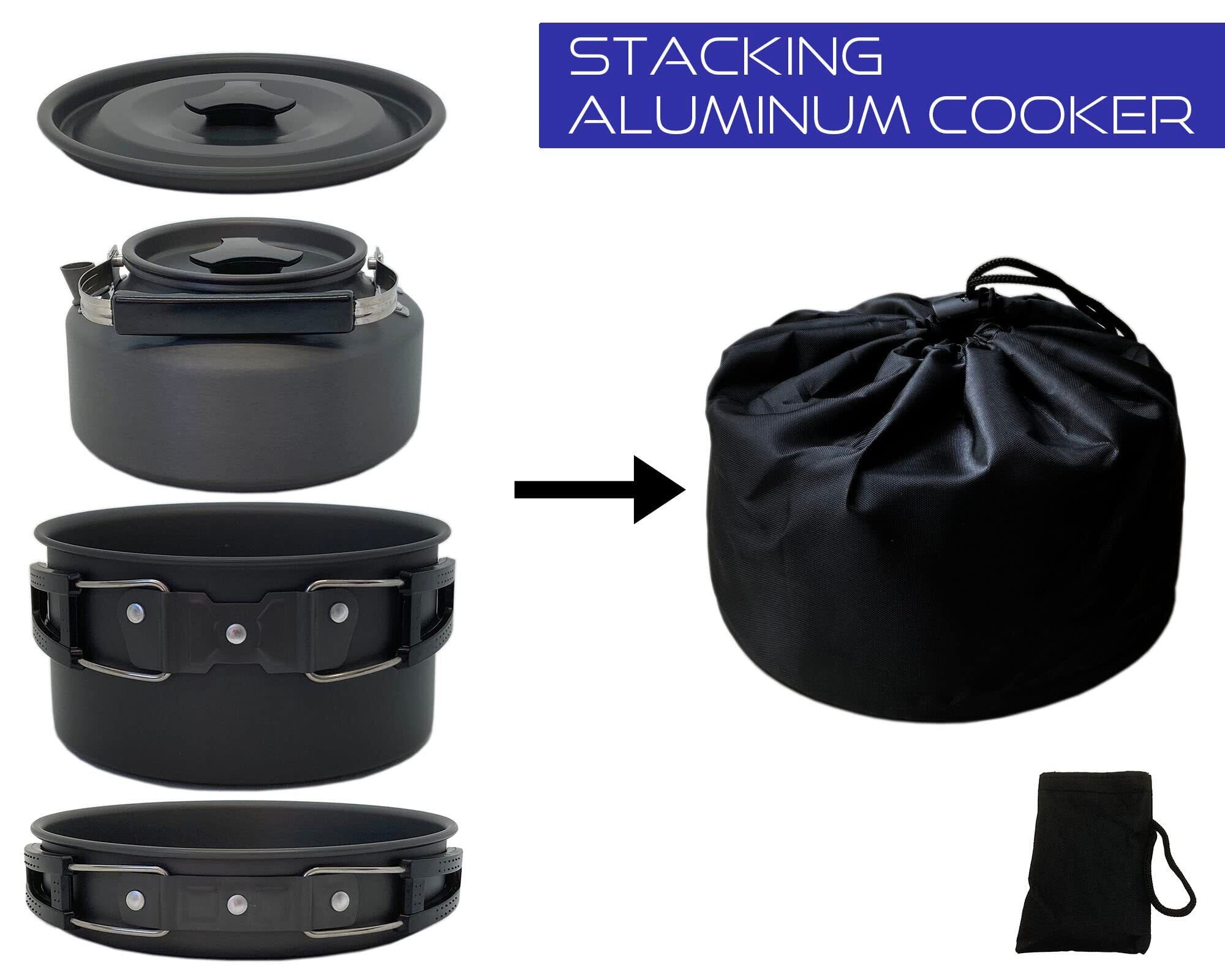アウトドアやキャンプ、バーベキュー等で活躍するアウトドア用クッカーセットです。スタッキングクッカーセットなのでコンパクトに収納できて、持ち運びに便利です。