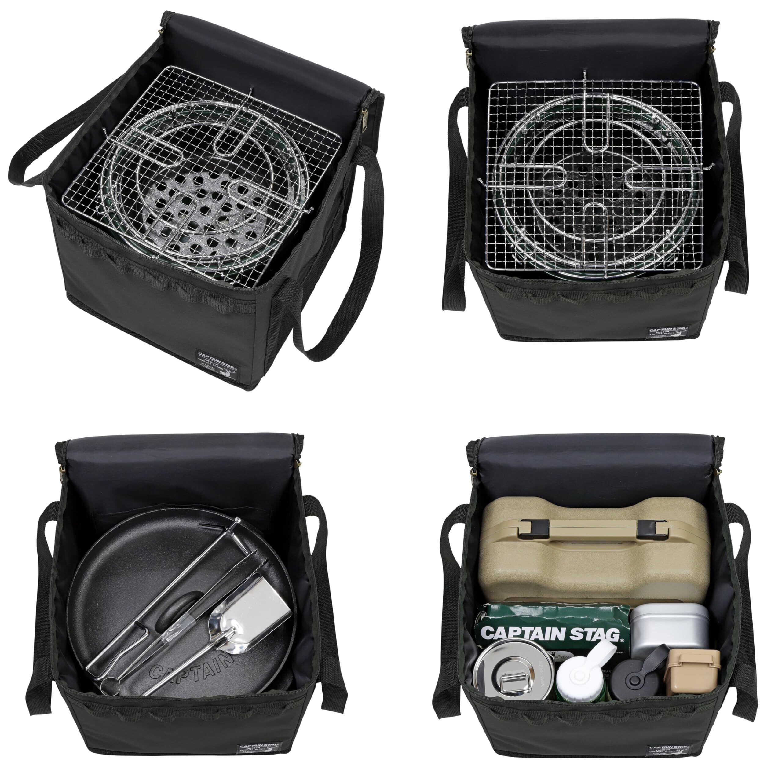 キャプテンスタッグ(CAPTAIN STAG) 七輪 炭焼き名人 万能七輪 ポータブル 水冷式七輪 収納ケース 七輪収納ケース ループ付 ポケット付【グリーン/ブラック/オリーブ】 M-6482/UG-89/UG-90/UG-3309/UG-3310