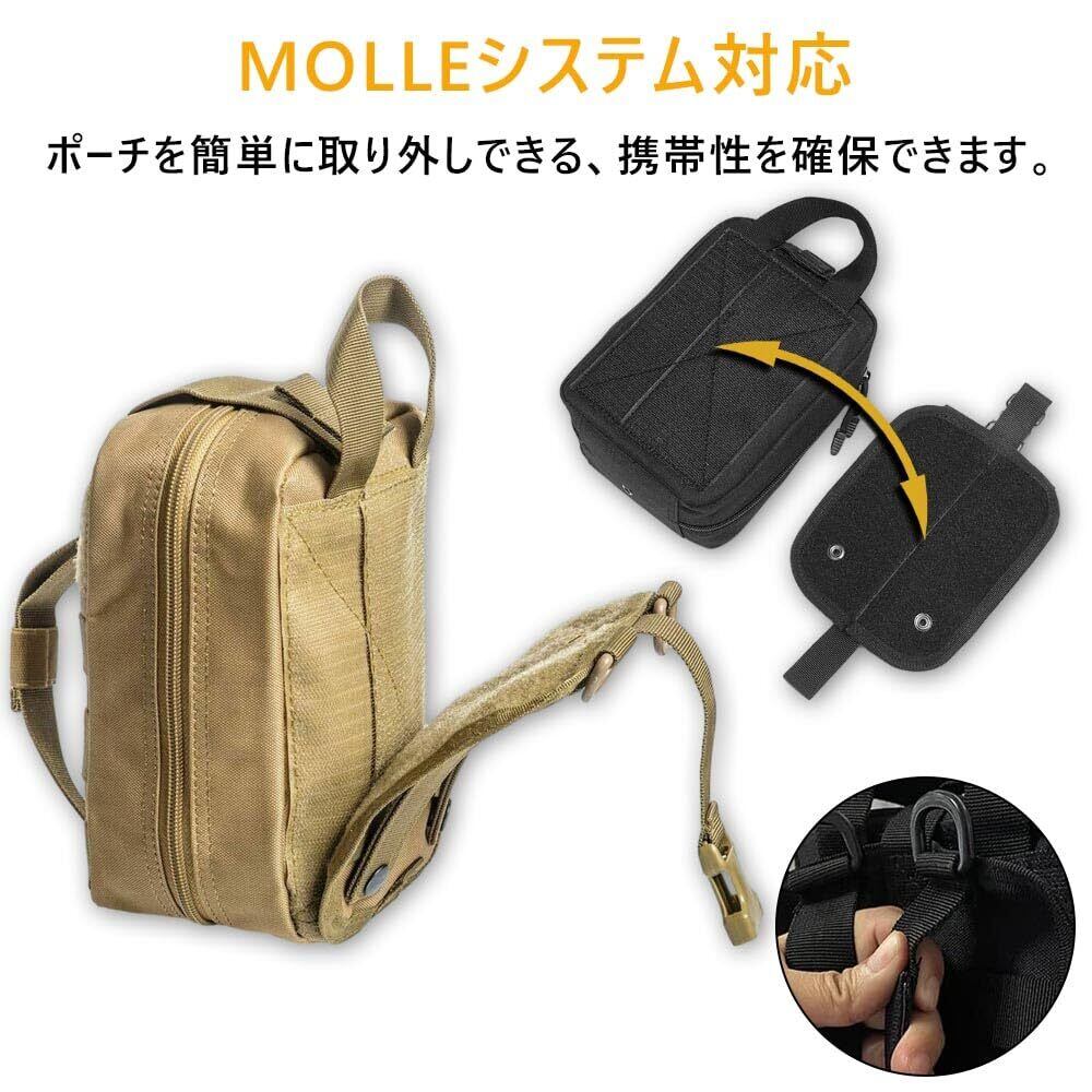 5.外部のフック:収納ポーチには外部のフックも備わっており、ハンドバッグやリュックサックなど他のアイテムに固定するのに便利です。これにより、医療キットを他の日常品と組み合わせて持ち運ぶことができ、負担を軽減し、携帯性を確保できます。