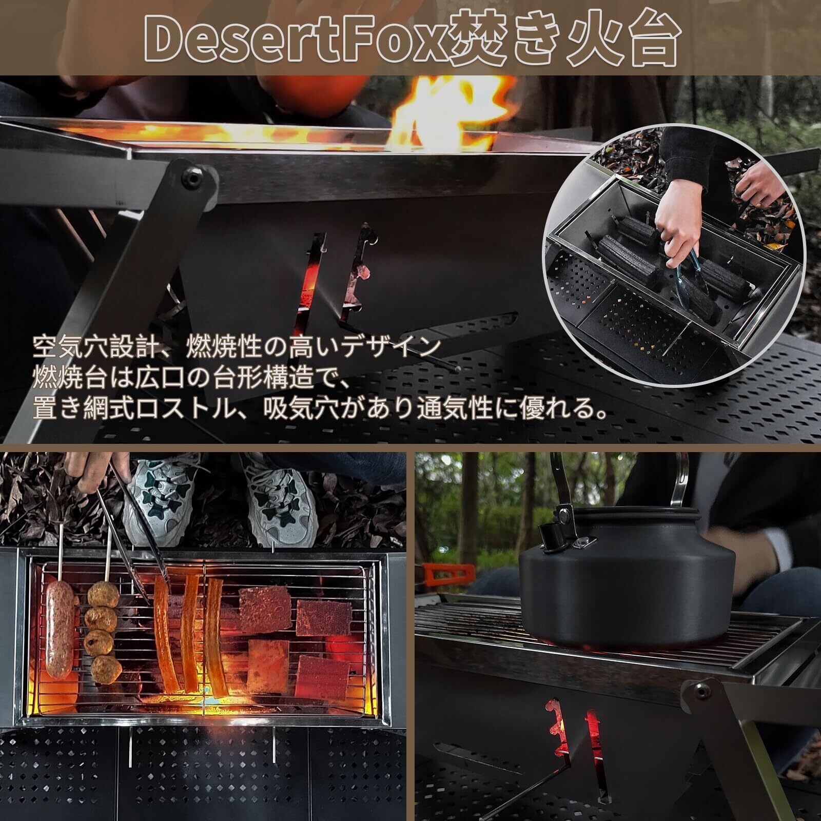 DesertFox 焚き火台 焚火台 バーベキュー コンロ コンパクト ステンレス製 2-4人用 軽量 秒速組立 折りたたみ式 1台3役 キャンプ用 高さ3段階調節可能 収納ケース付属 KJ (S)