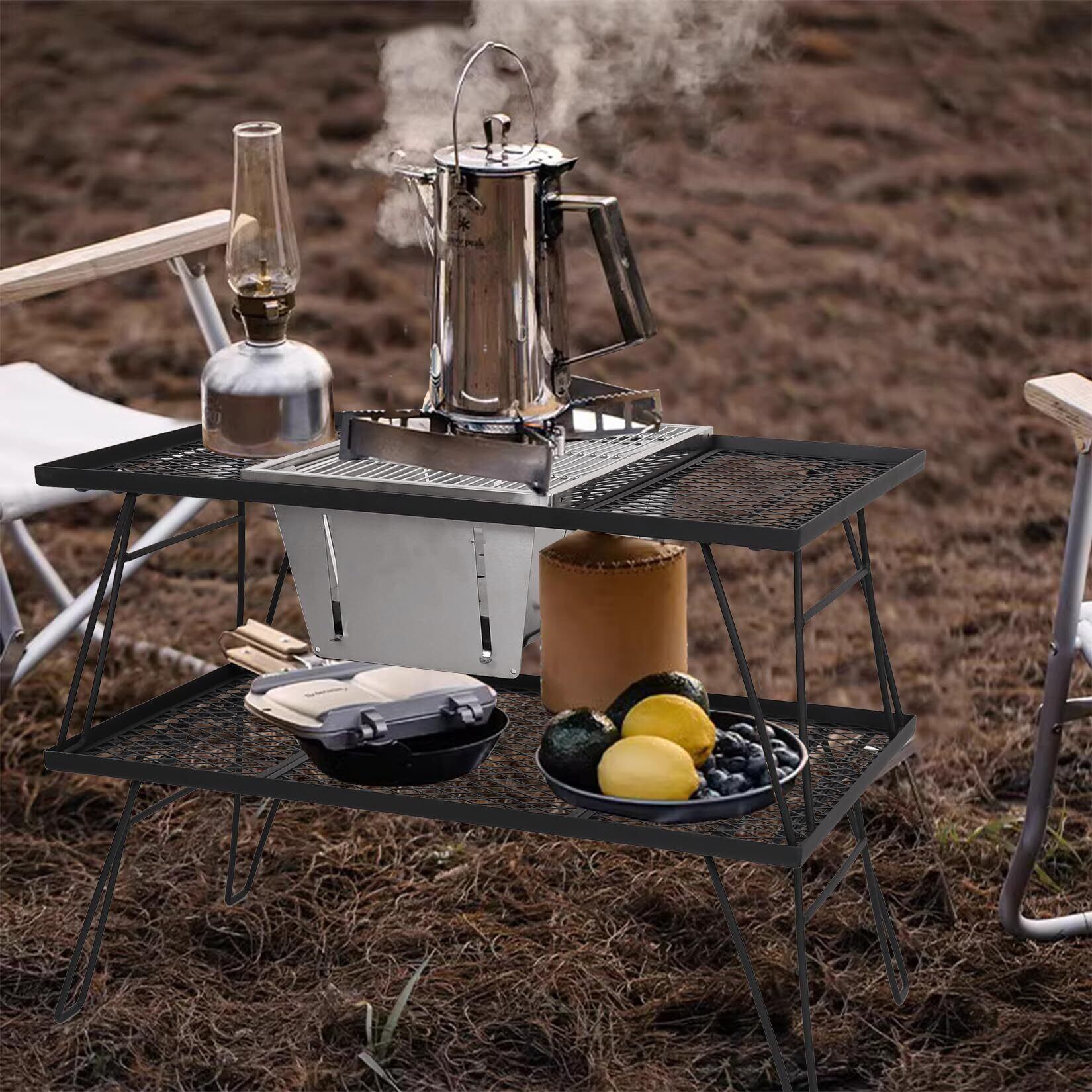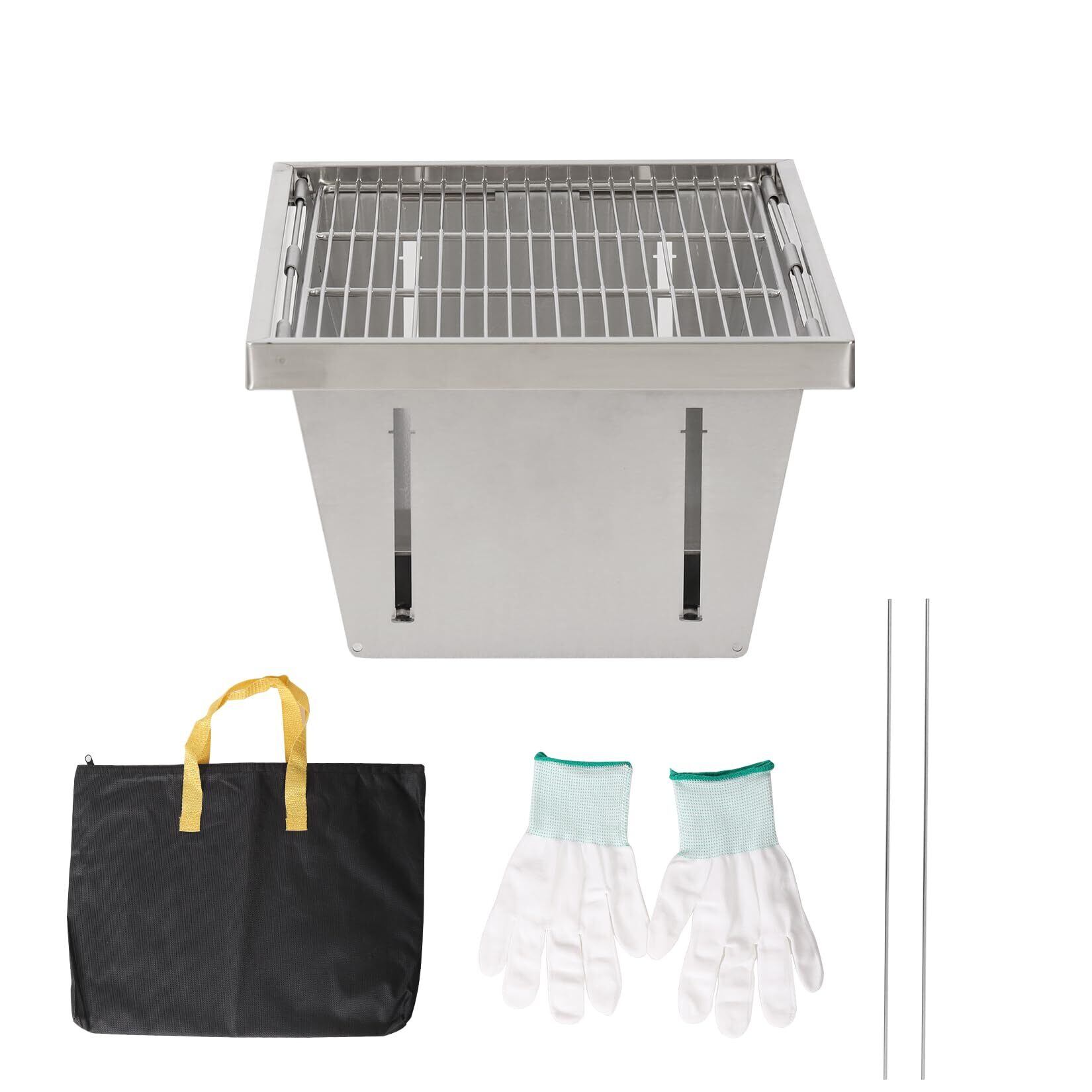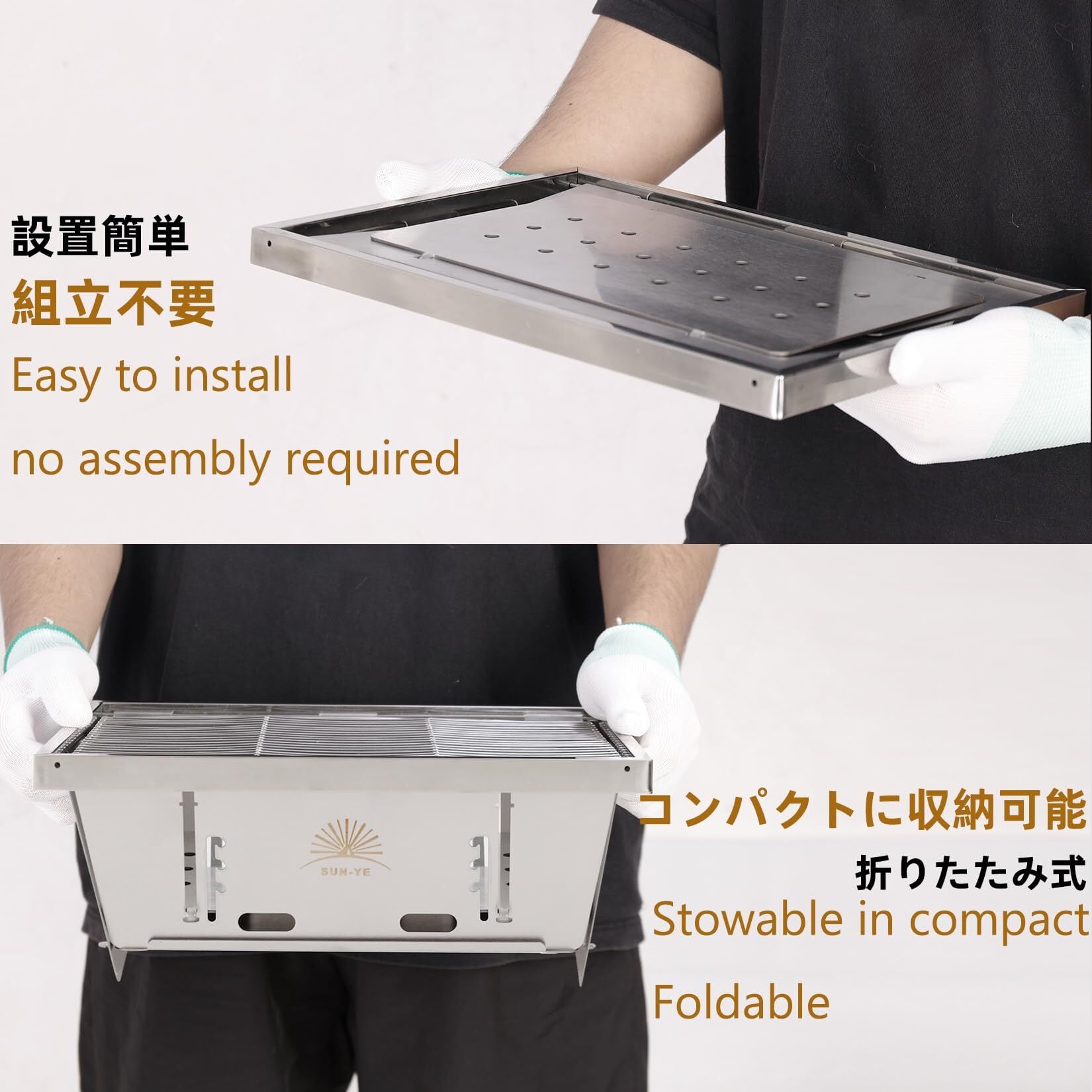 SUN-YE 折り畳みコンロ バーベキュー コンロ BBQグリル 焚き火台 igtテーブル用 調整可能な炉内燃焼カーボンプレートの高さ ステンレス製 瞬時に展開・収納 ステンレス鋼 1枚 ステンレス棒 2本 収納袋付き