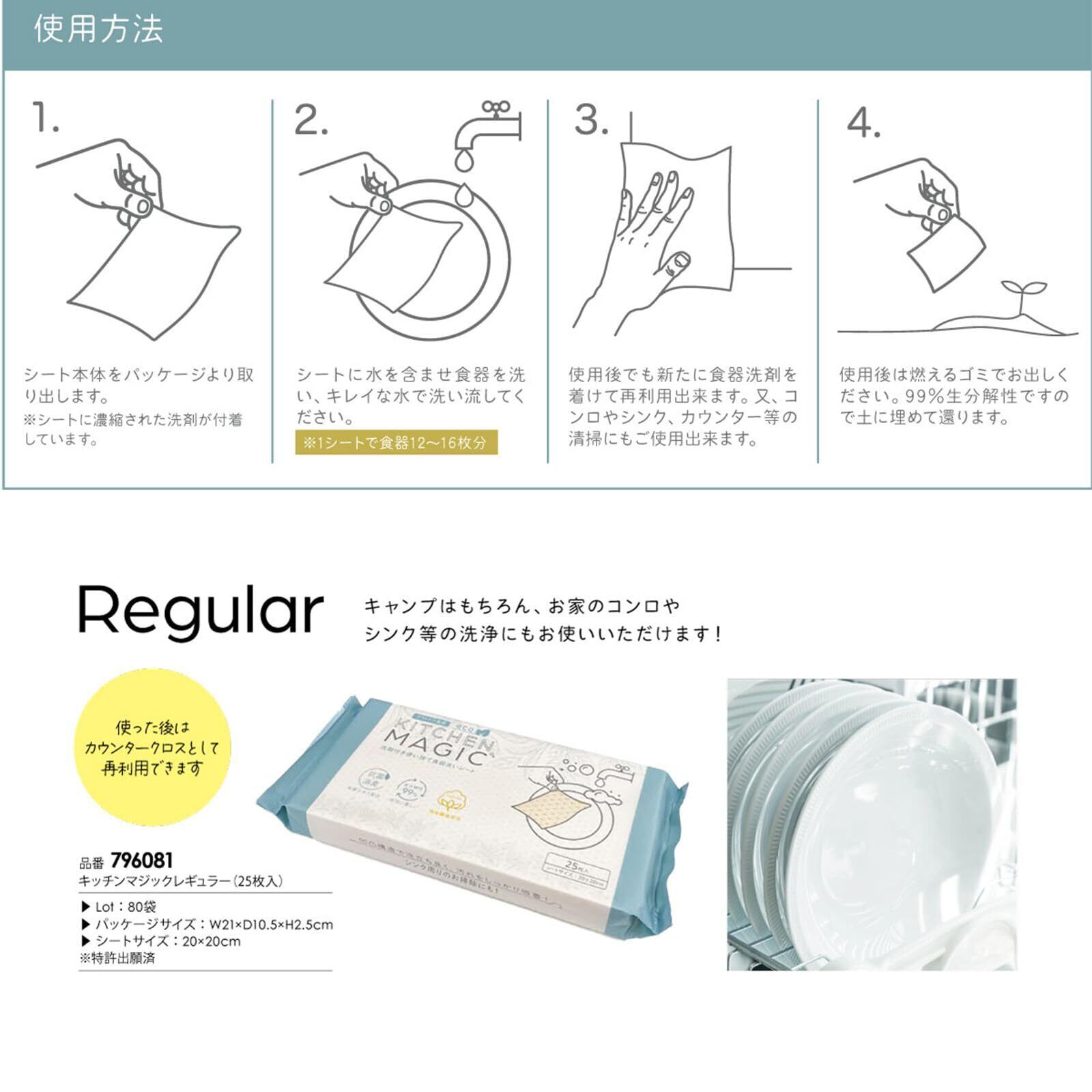 【在庫処分】キューフラ(Q-FLA) キッチンマジックミニ 20枚入 使い捨て食器洗い洗剤 シート 食器洗いせっけん 食器洗いスポンジ 食器用スポンジ ウエス ワイプ キッチン用品 キャンプ 屋外 803031 | paghag