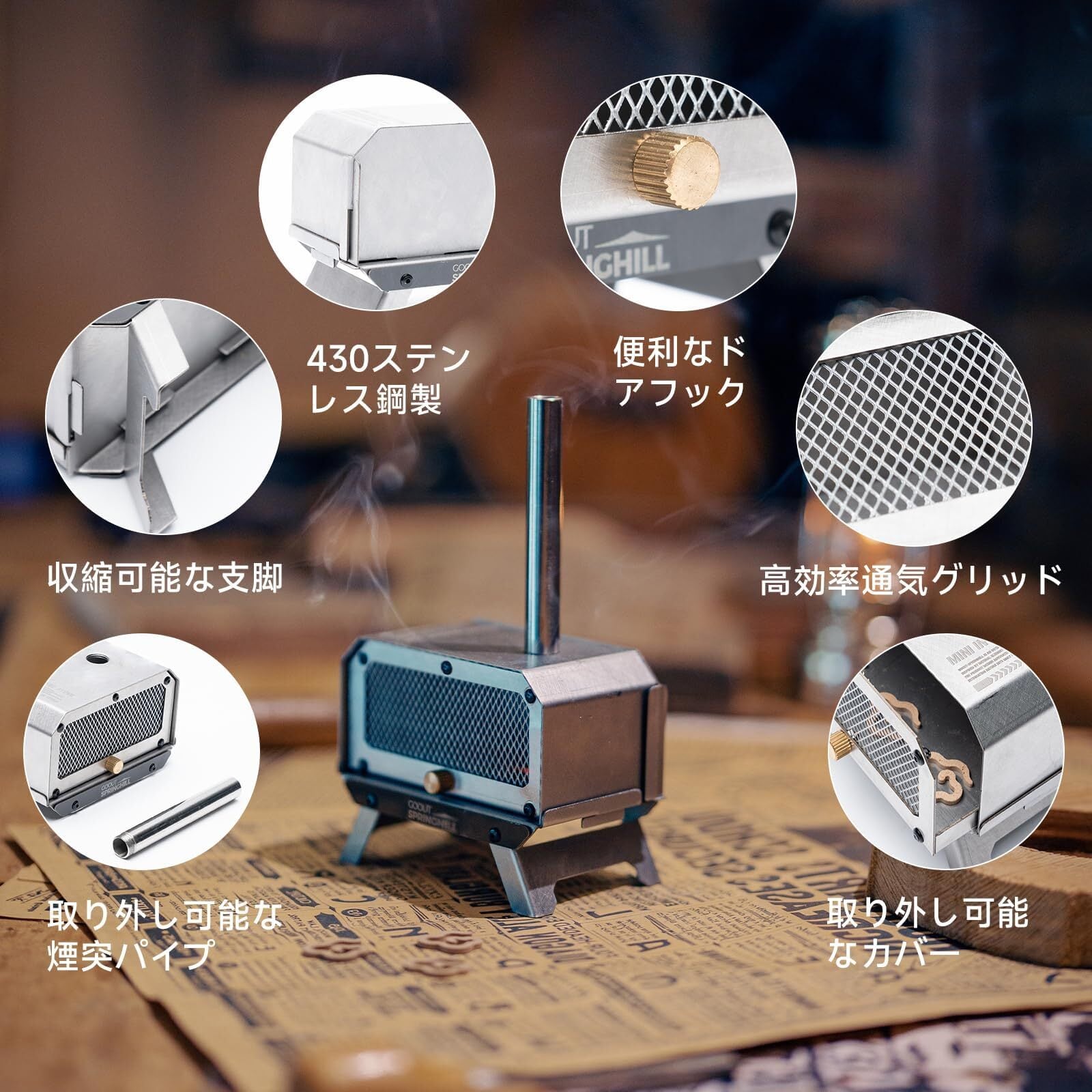 アウトドアに最適なデザイン:Springhillの折り畳み式香炉(アウトドア香炉)は、アウトドア風のスタイリッシュなデザインで自然と調和します。キャンプや野外活動で心地よい香りを楽しみながら、非日常的な雰囲気をお楽しみいただけます。