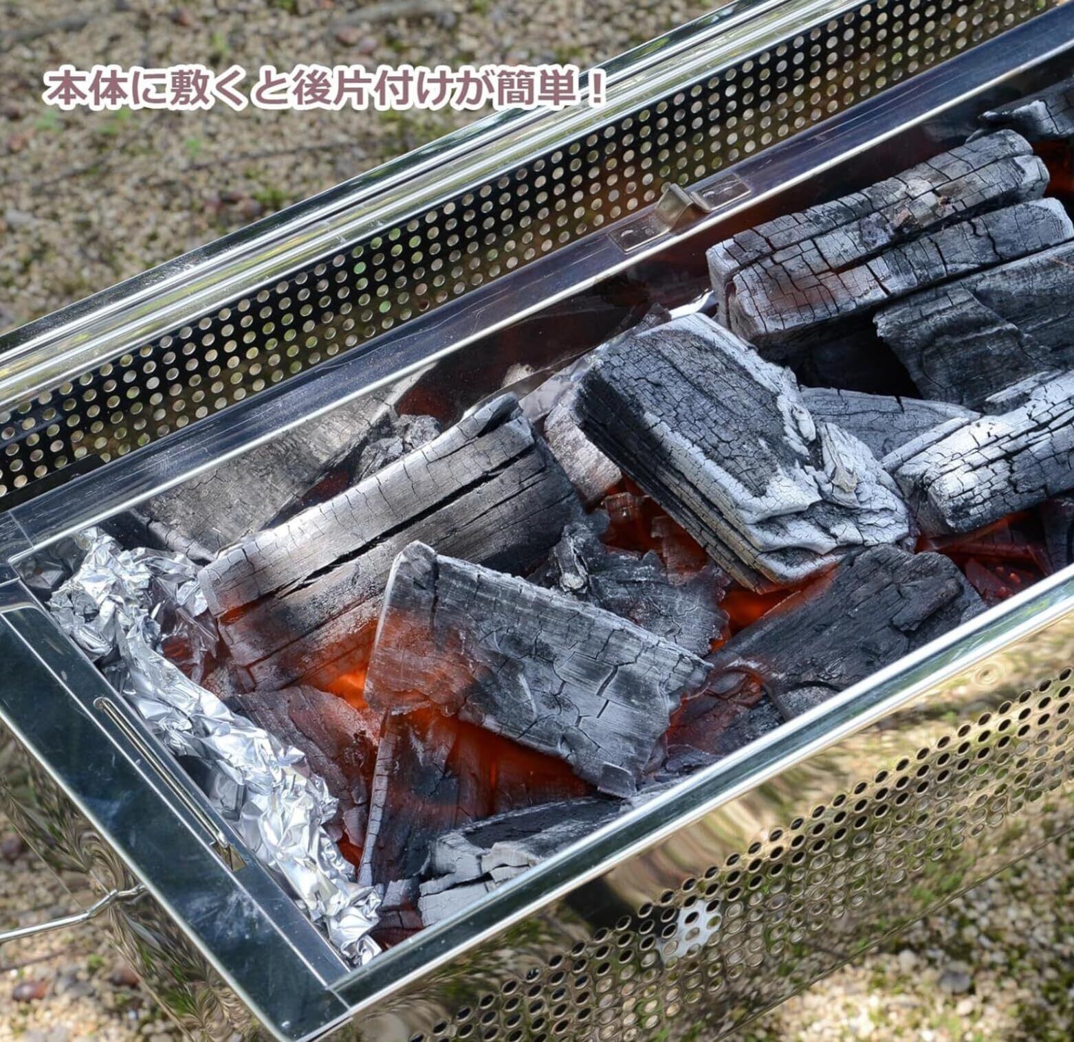 尾上製作所(ONOE) BBQお助けシート(極厚アルミシート) G-ON-3501/ G-ON-3502 炭が直接炭床に触れないのでコンロの耐久性が向上 後片付け簡単 終わったら炭ごと丸めて捨てるだけ 網に巻いて簡易プレートに BBQの楽しみ広がるグッズ キャンプ アウトドア