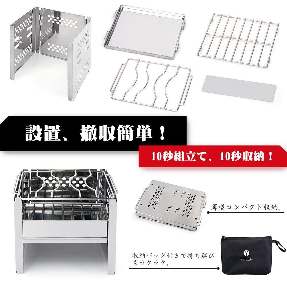 【新春セール】ヨーラー|YOLER 折りたたみコンロ バーベキュー コンパクト キャンプ アウトドア かまど 焚き火台 1台多役 1-2人用 2段調節 B6より大きい 薪 ストーブ アウトドア愛好者のプレゼント 卓上コンロ ソロキャン 釣り お花見 GS001 | paghag
