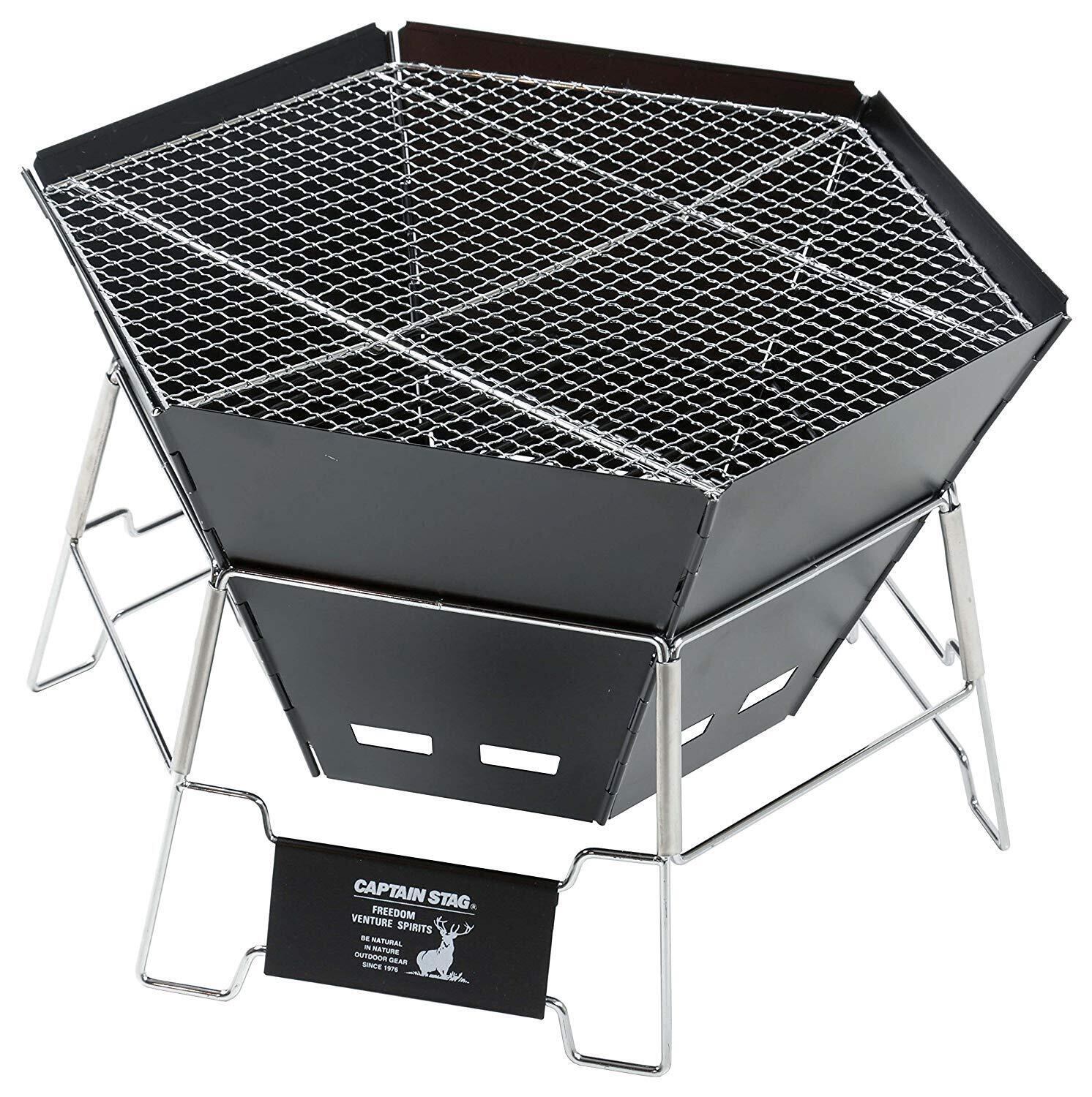 キャプテンスタッグ(CAPTAIN STAG) バーベキューコンロ 焚火台 ダッチオーブン 1台3役 ヘキサステンレス ファイアグリル バッグ付 CSブラックラベル UG-50