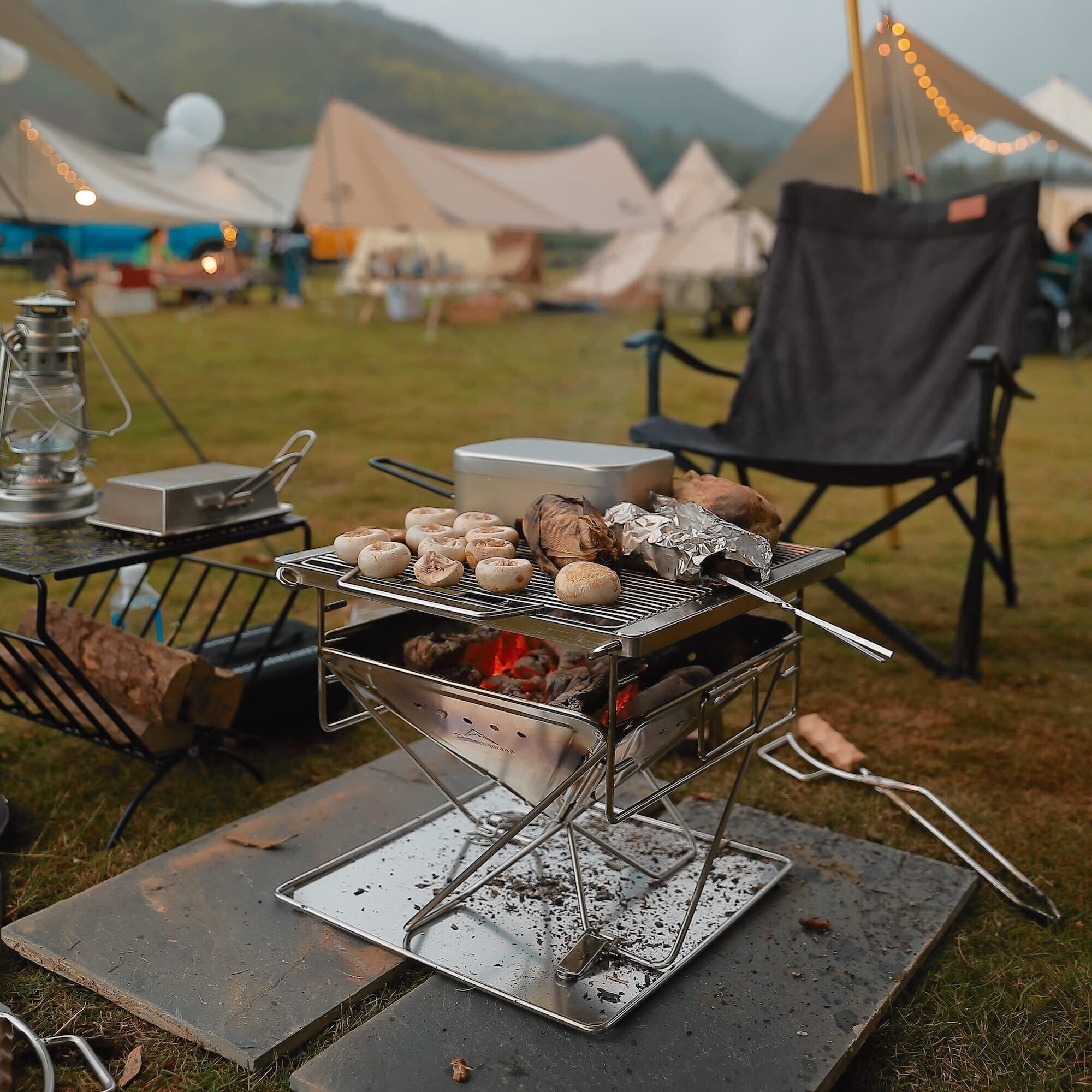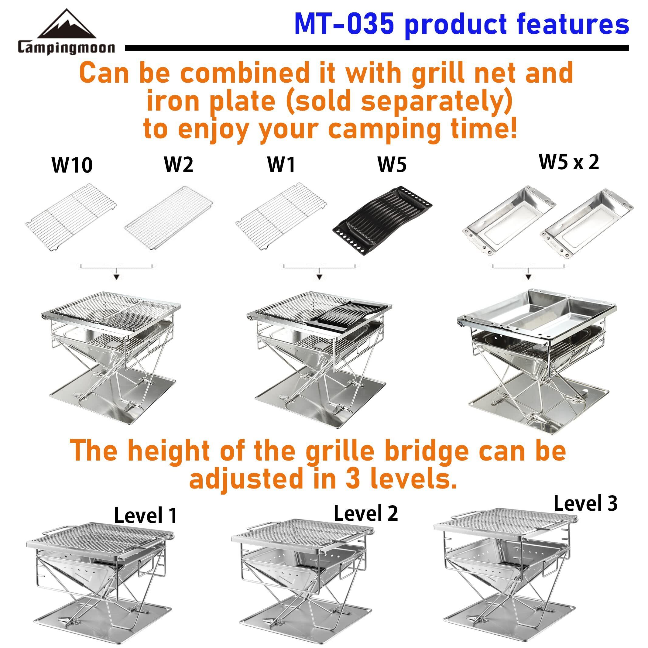 キャンピングムーン(CAMPING MOON) バーベキューコンロ 焚き火台 焚火台 折りたたみ 3段調整 カマド スマートグリル FULL SET 収納バッグ付 (Mサイズ(MT-035))