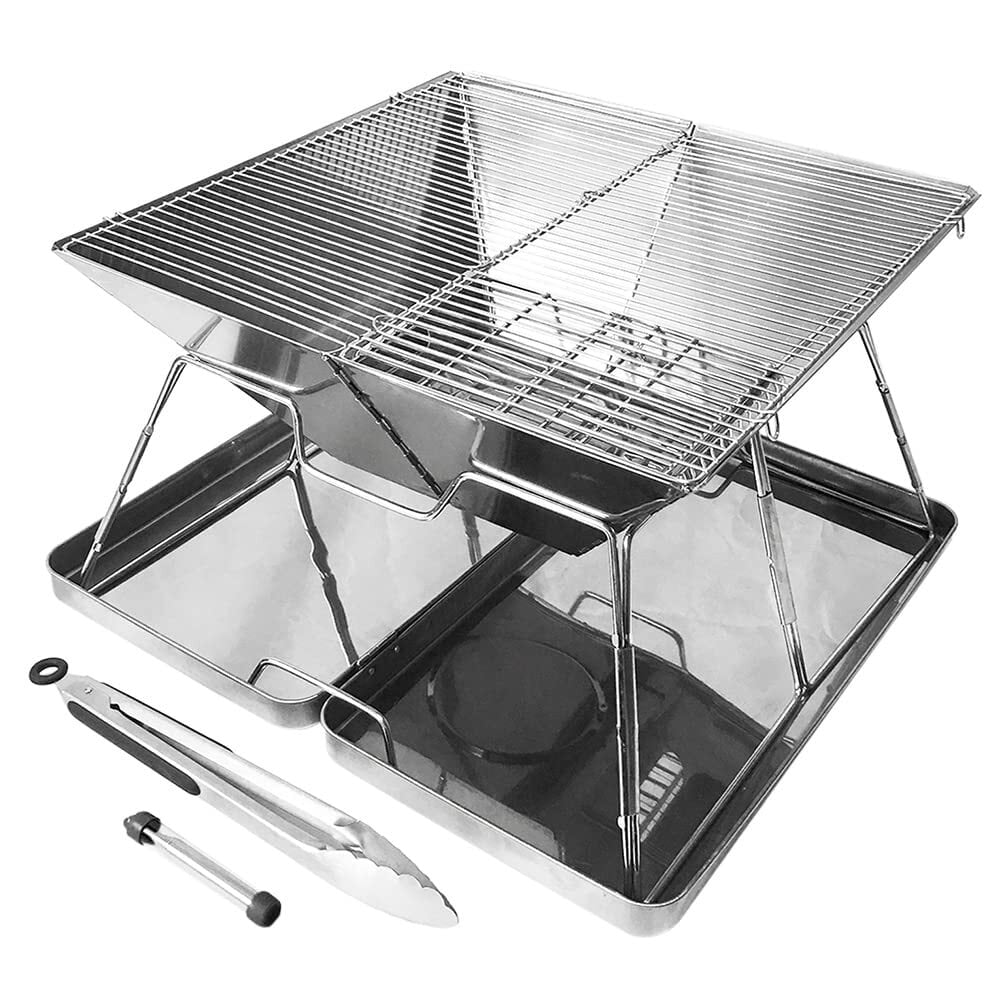 【特価商品】キャンプグリーブ 【国内ブランド】 バーベキューコンロ 焚き火台 ファミリーキャンプ 4-6人用 42D x 42W x 27Hcm コンパクト 折りたたみ トング 火吹き棒 炭バサミ ステンレス製 サイド収納 | paghag