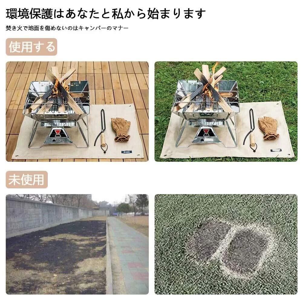 【地面を守る】焚き火台の下に敷くシートで、焚き火やBBQをする時に起こってしまいがちな、炭・薪がはぜて地面にダメージを与えてしまうことを防ぐためのものです。非常にアウトドアやキャンプに適しています。直火禁止のキャンプ場で焚き火を楽しむ必需品です。