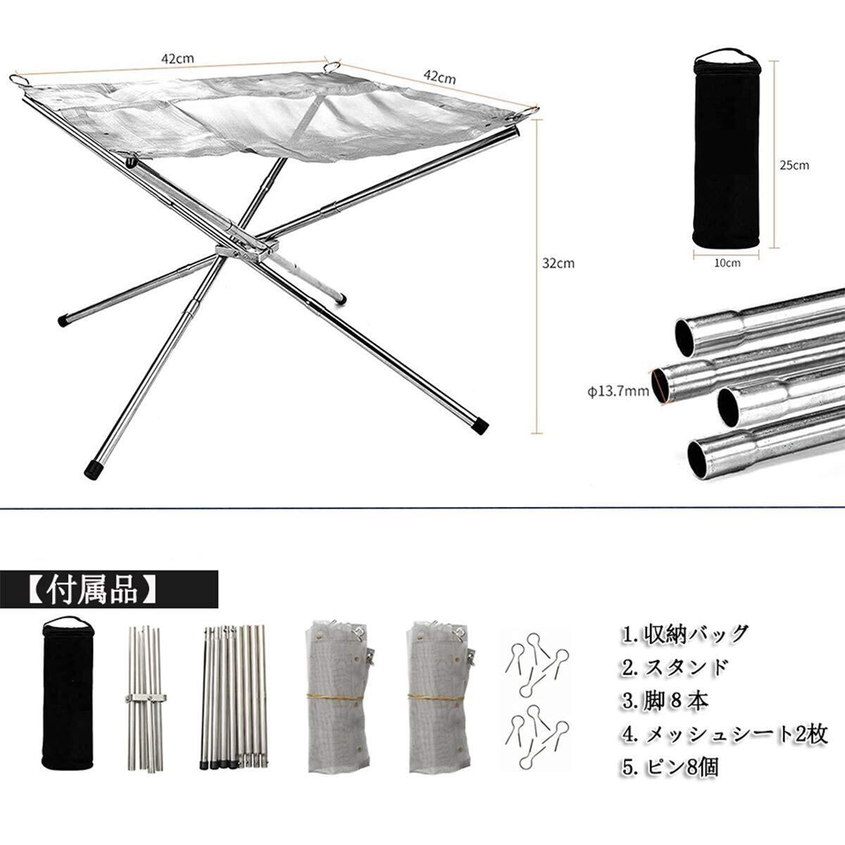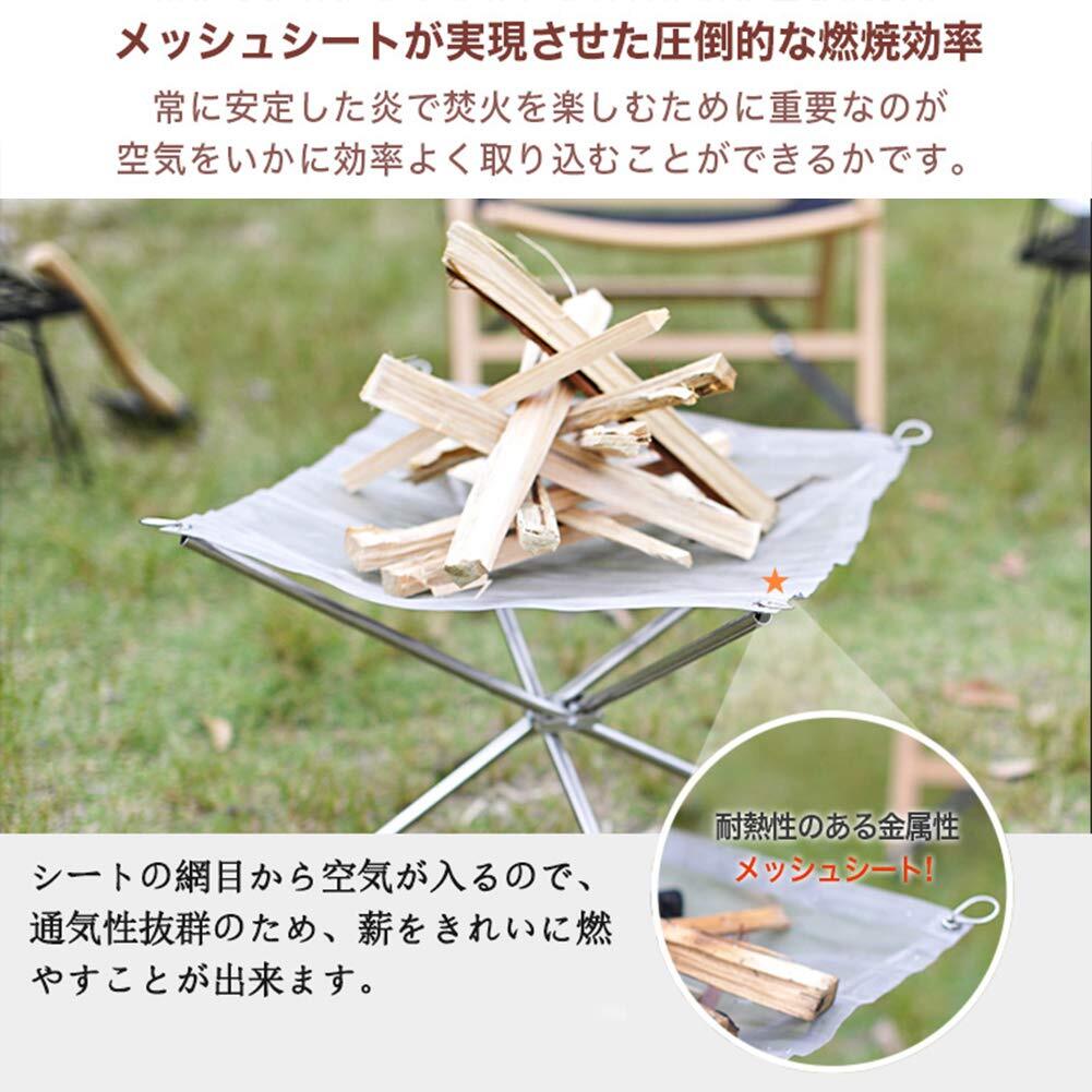 焚き火台 メッシュ 【2枚】付き 折りたたみ式 焚き火スタンド アウトドア ファイアスタンド キャンプ バーベキュー焚火台 コンパクト 携帯便利