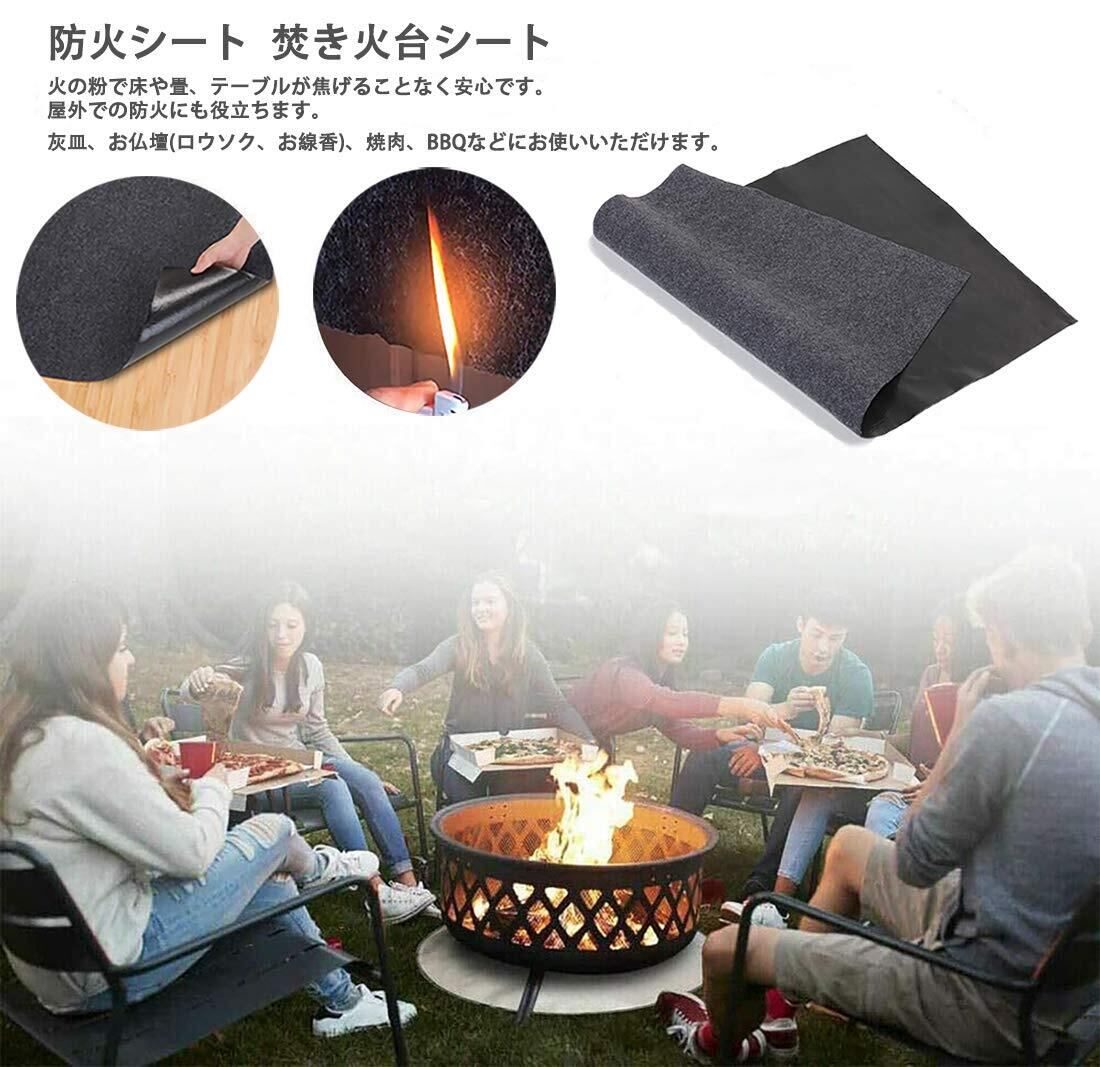 ●用途:火の粉で床や畳、テーブルが焦げることなく安心です。屋外での防火にも役立ちます。コンロ、薪ストーブ、焚き火台の周りなどにもお使いいただけます。キャンプの芝生サイトにて芝生を保護する目的で焚き火台の下に敷いてます。
