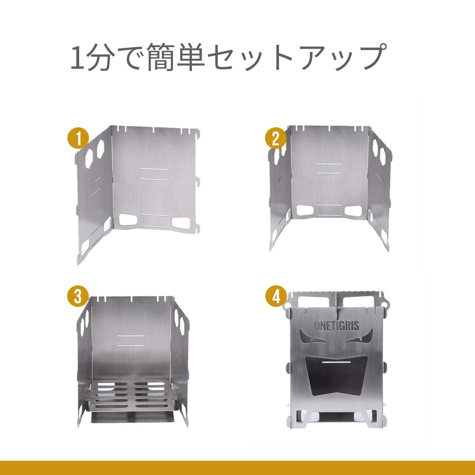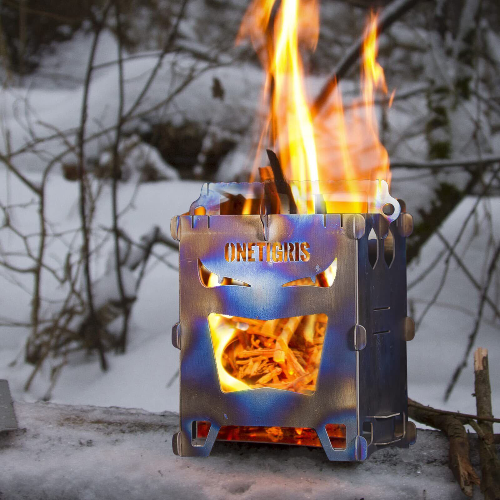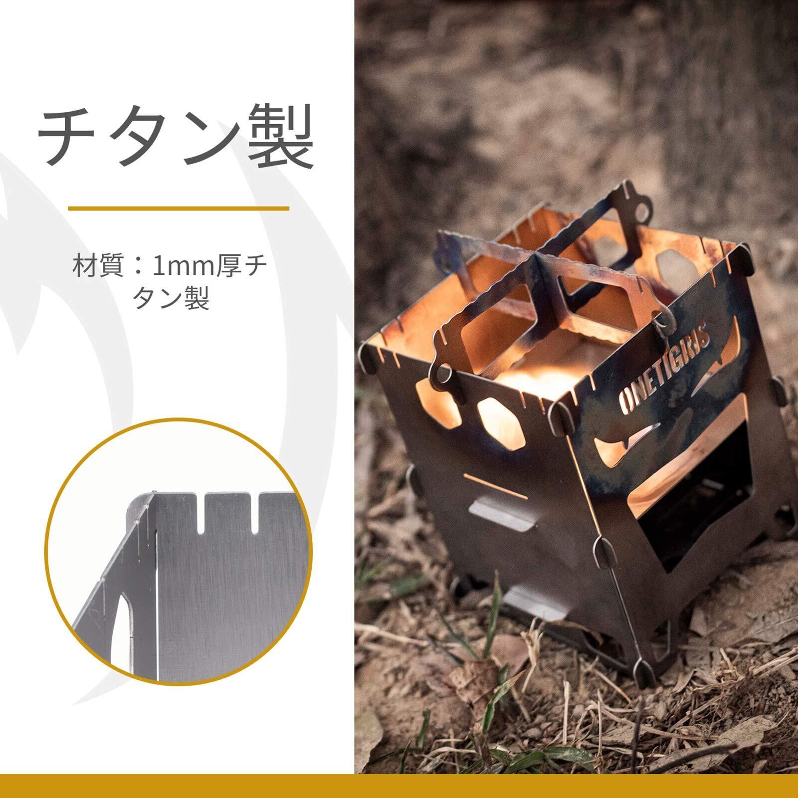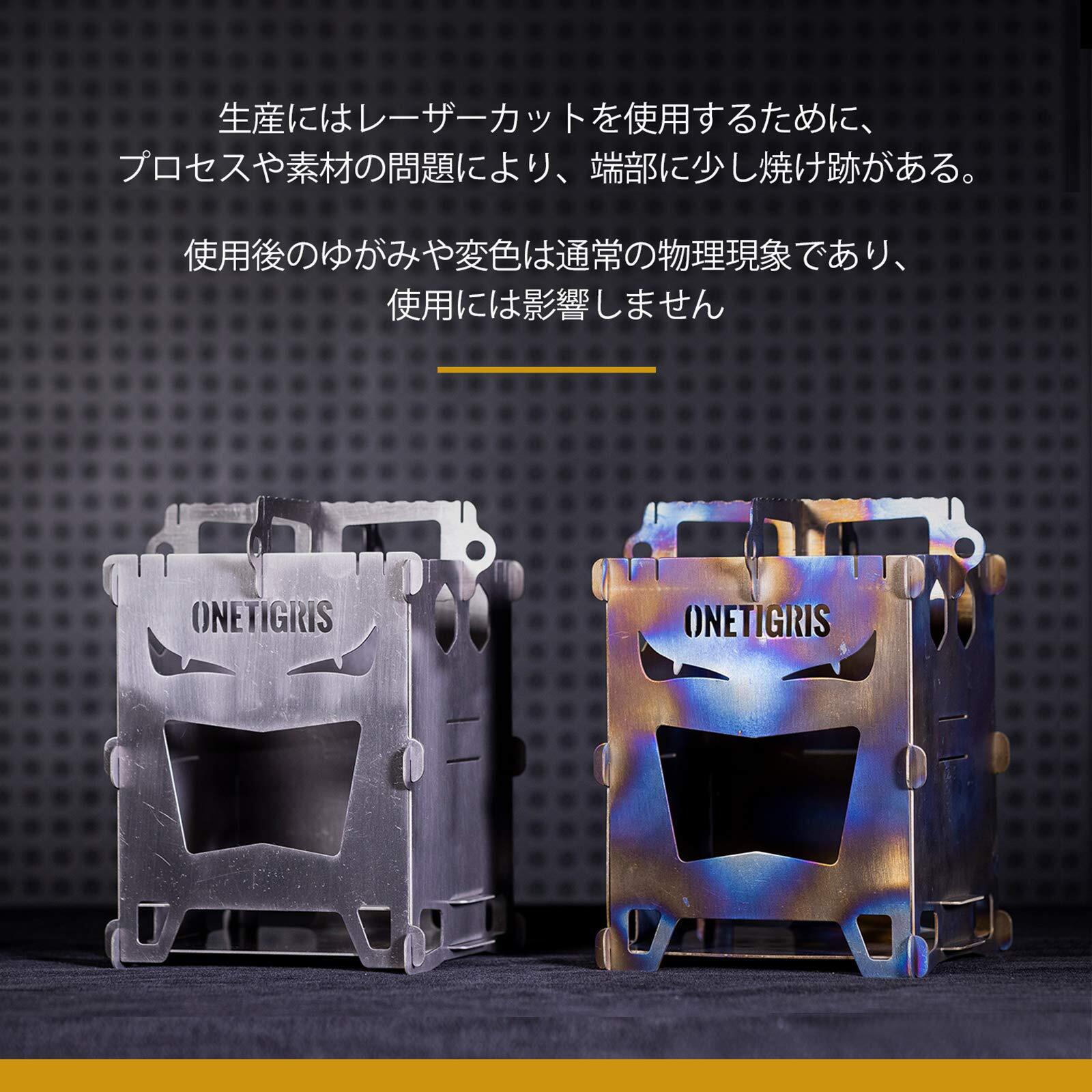 OneTigris ROCUBOID チタン ミニ焚き火台 ソロストーブ ウッドストーブ 組立簡単 アウトドア キャンプ 軽量 コンパクト 折りたたみ 収納バッグ付き (悪魔の顔)