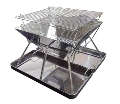 SCAMPER バーベキューコンロ 焚き火台 コンパクト折りたたみ式 2-4人用 1台2役 収納バッグ付き アウトドア バーベキュー (ステンレストレー付き)