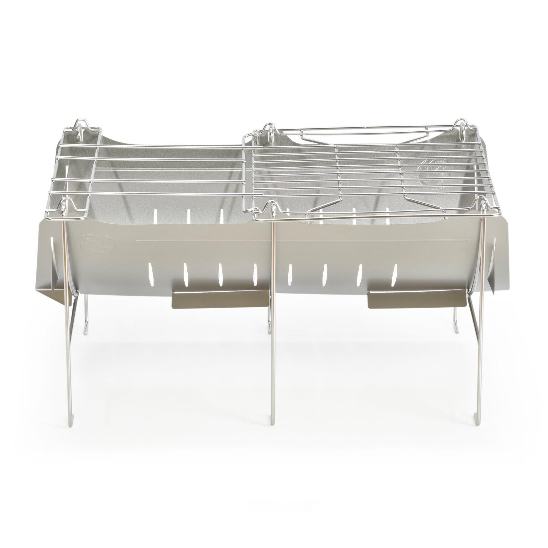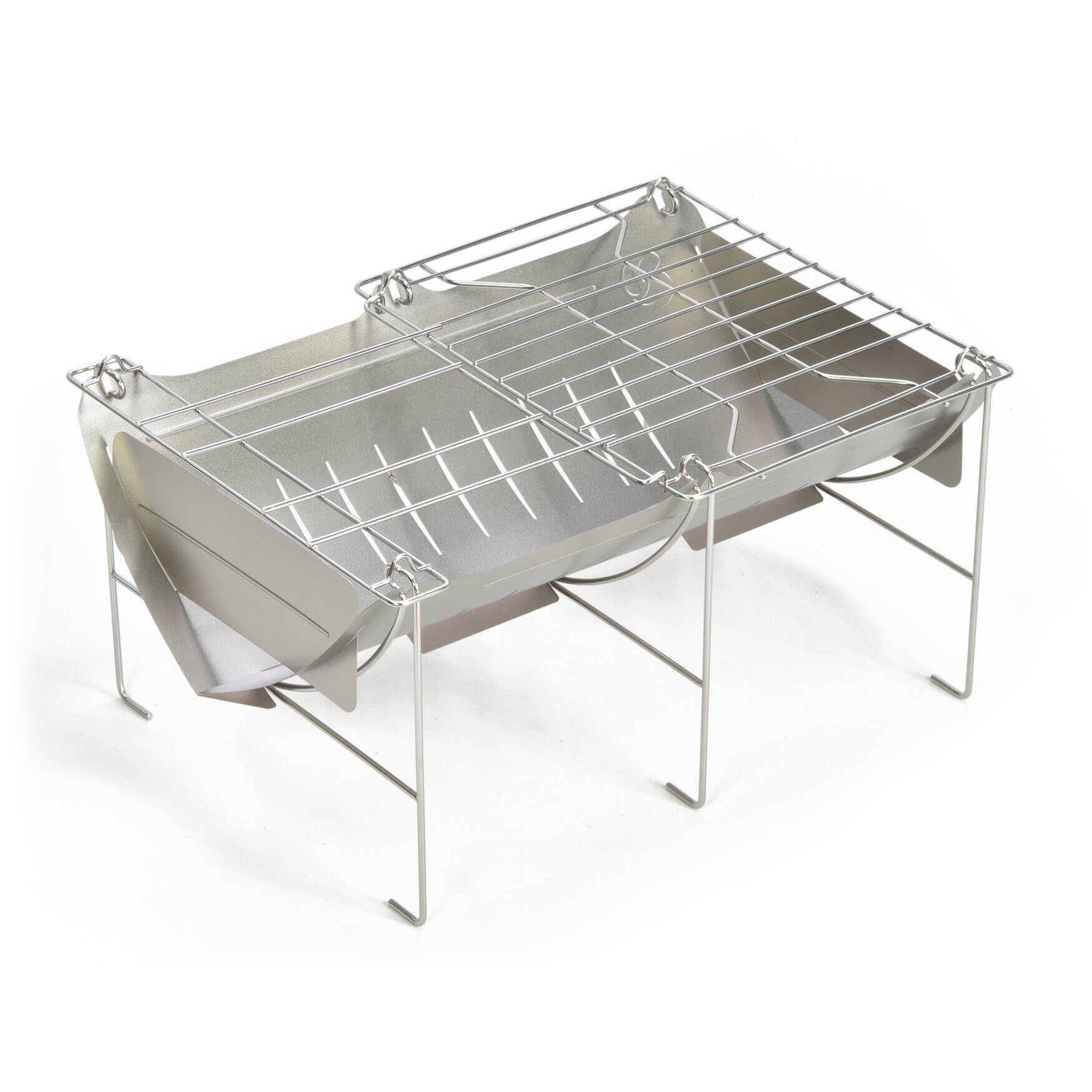 燃焼効率も良く、焼き網付きで、料理もしやすいチタンの焚き火台。