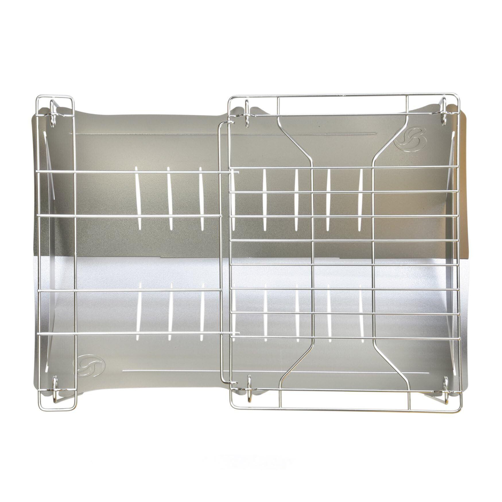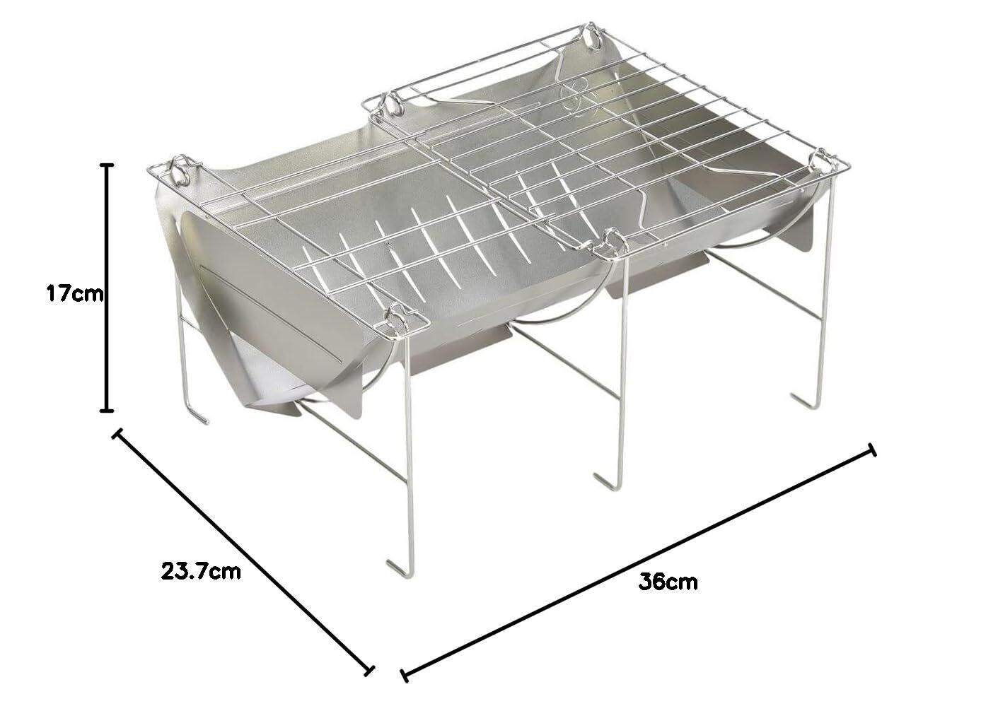 本体:298g(火床+脚)+29g(側板)+96g(網)+55g(グリルエクステンション)全体の重量は約478gですが、本体のみで約298gの超軽量の焚き火台としてご使用いただけます。