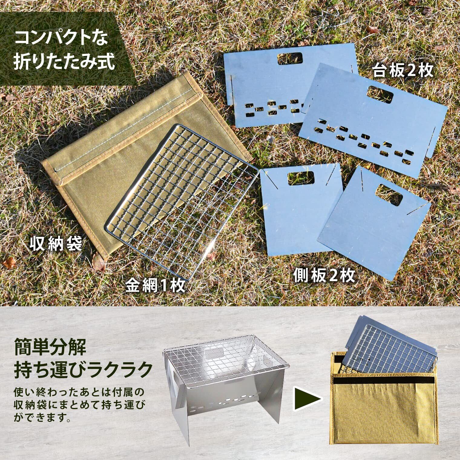 キャンプで焚き火を楽しむための必需品。キャンプ場の芝などを焦がすことなく焚き火ができます。[サイズ]約19.5×12×13.2cm、(金網)約20×15cm[付属品]金網、専用収納袋[素材・材質]ステンレス/ ポリエステル[生産国]中国
