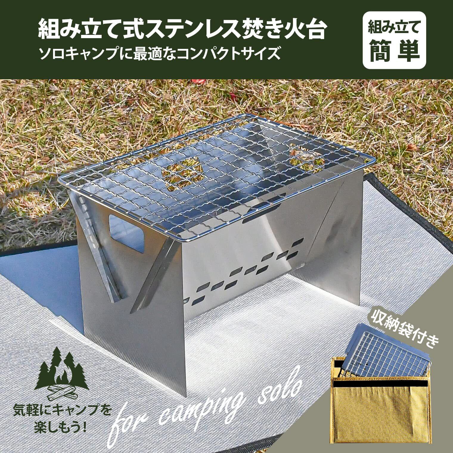 【新着商品】ソロキャンプ用品 ステンレス焚き火台 (1~2人用) 19.5×12×13.2cm、(金網)20×15cm #3282 シルバー