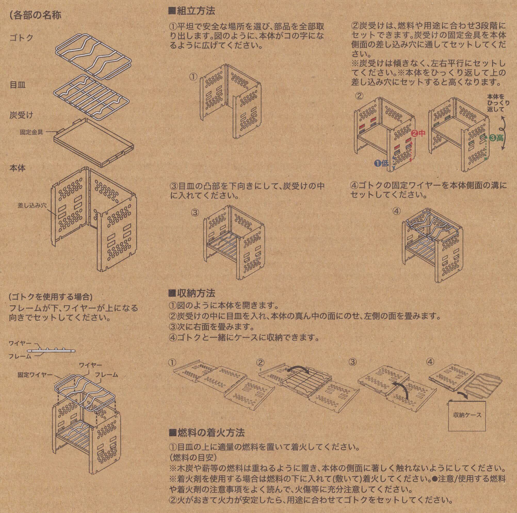 素材・材質:本体、炭受、ゴトク、目皿=ステンレス鋼 収納ケース=ポリエステル